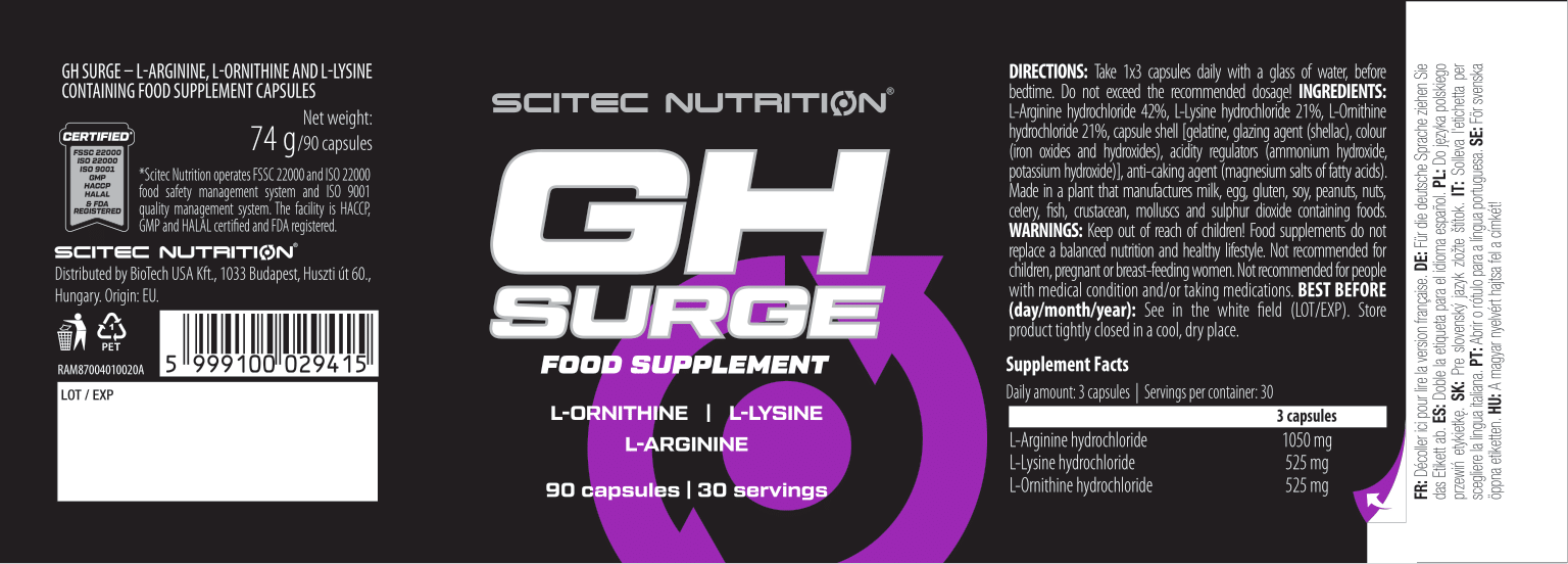 - 含三種氨基酸混合物 ( 包括 精氨酸,鳥氨酸及賴氨酸 )。