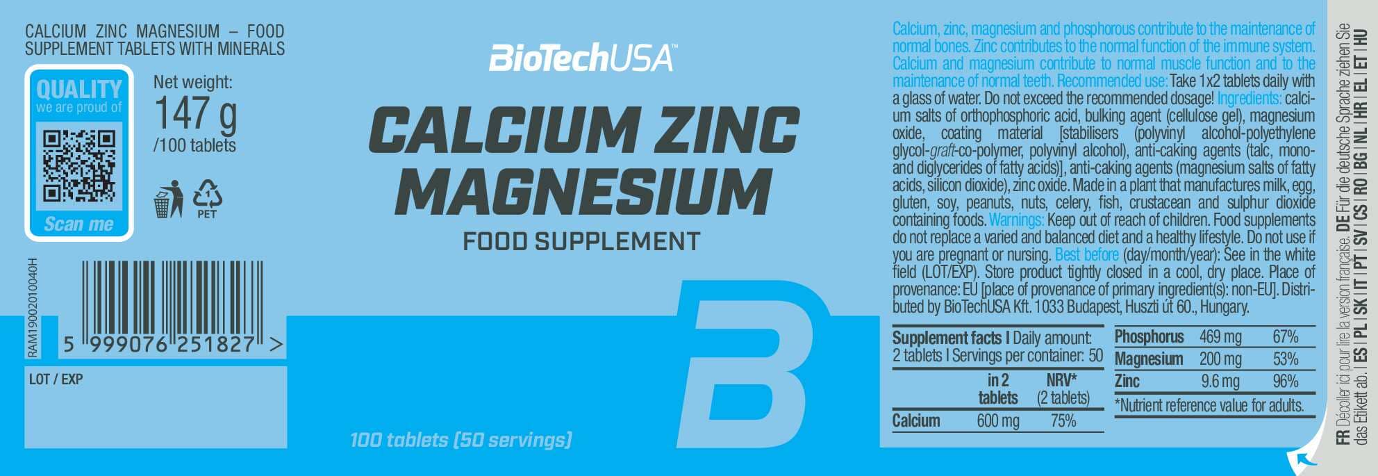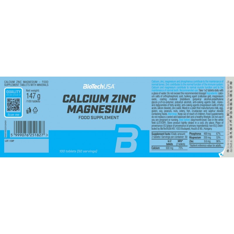 - 含四種不同礦物質的補充品,分別為鈣、磷、鎂與鋅。