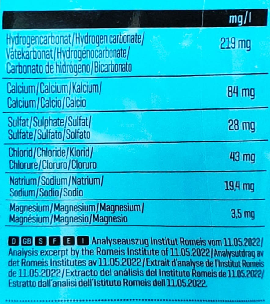 新的Body Attack自然運動水是一種礦泉水,可消除口渴,每升包含0.079克鈣,0.175克碳酸氫鹽,0.038克氯化物,0.003克鎂和0.016克鈉。