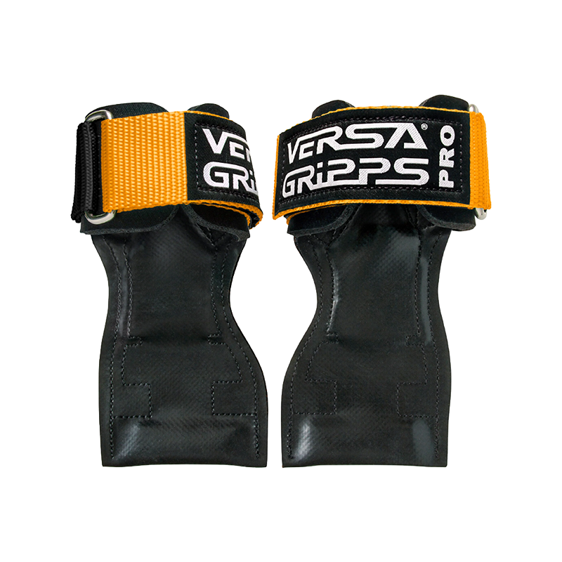 每一對 Versa Gripps 都包含一個左手握把和一個右手握把。從右手握把開始,右手握把在手腕墊下方有標籤以便識別。將標籤朝向你,將手腕帶穿過金屬環,然後將右手穿過鬆弛的圈。用手指握住掌心部分,同時用左手收緊手腕帶。左手握把也以相同方式操作。