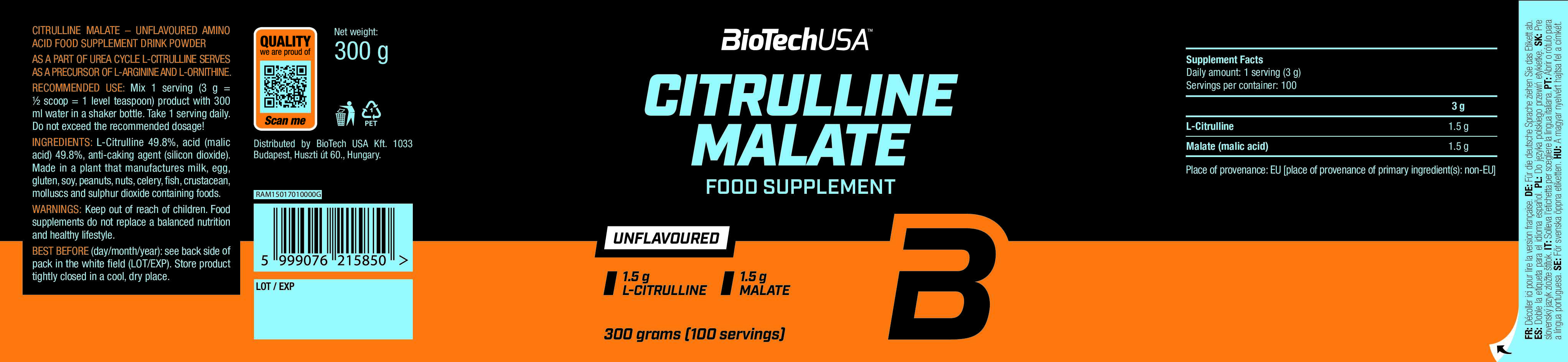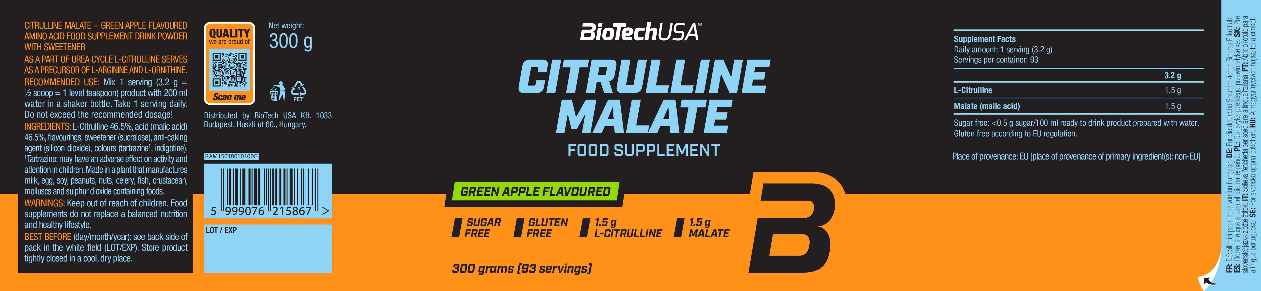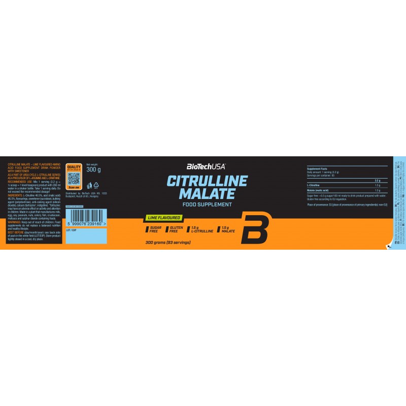 L-瓜氨酸與蘋果酸的協同組合是 L-瓜氨酸蘋果酸鹽。蘋果酸是一種天然存在的有機酸,例如在蘋果中即可找到。L-瓜氨酸也是合成 L-精氨酸與 L-鳥氨酸的前體。