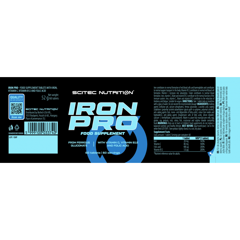 - 每粒含20毫克鐵,來自有機葡萄糖酸亞鐵來源