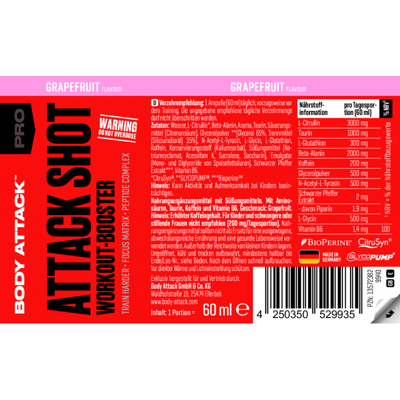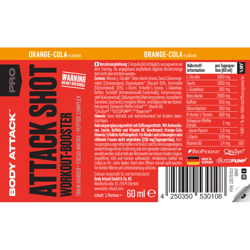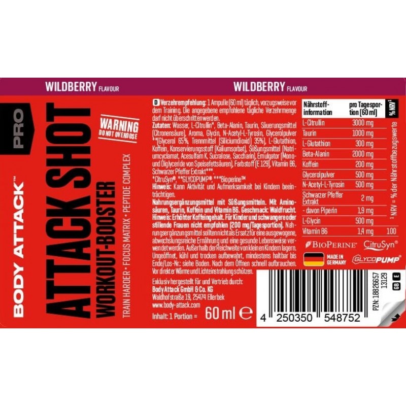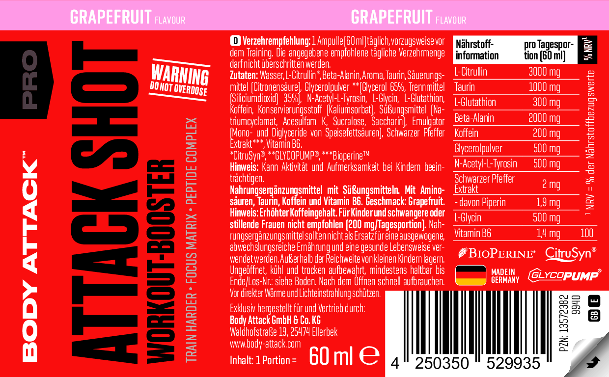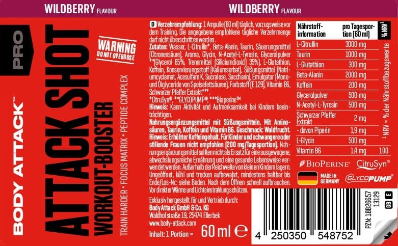 Body Attack ATTACK SHOT 是一款便攜式運動前能量提升飲品,適合訓練前飲用,幫你提升集中力同爆發力。