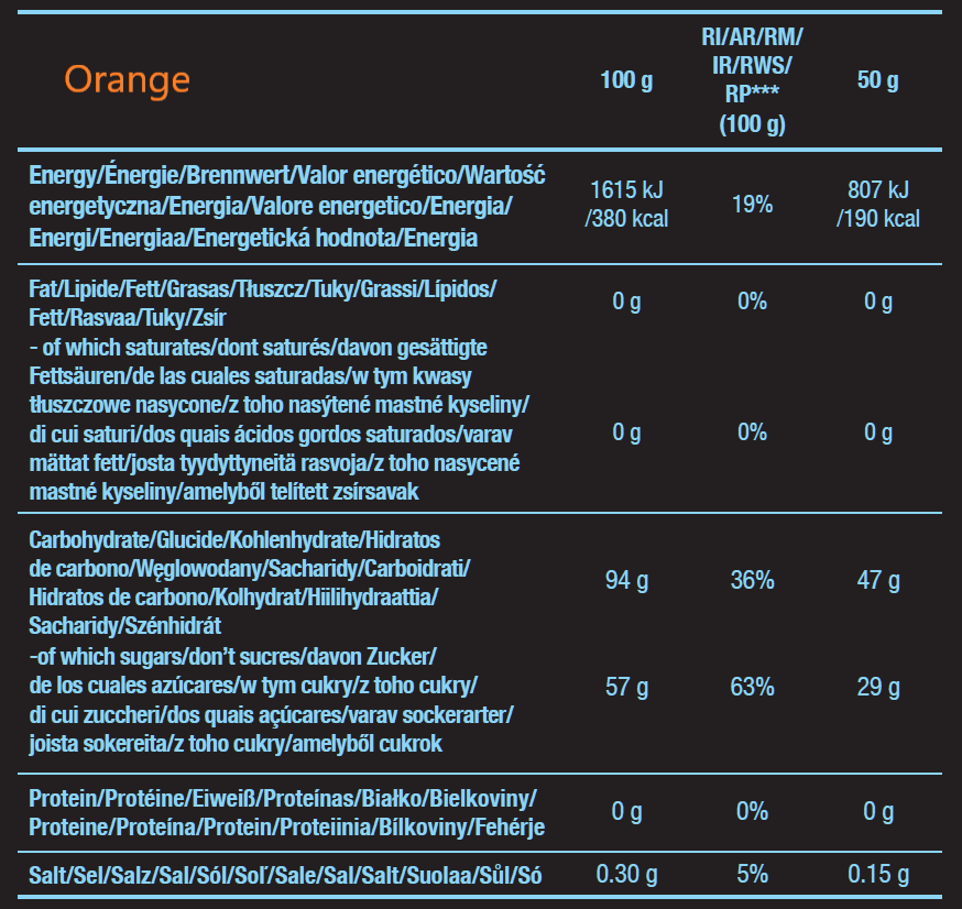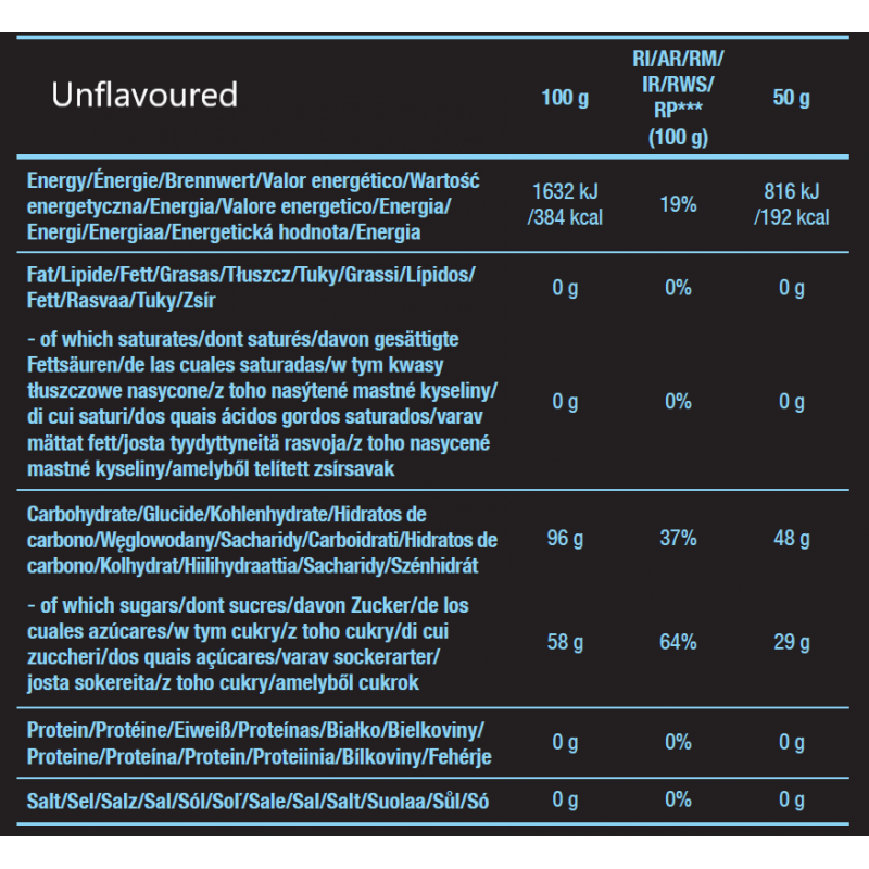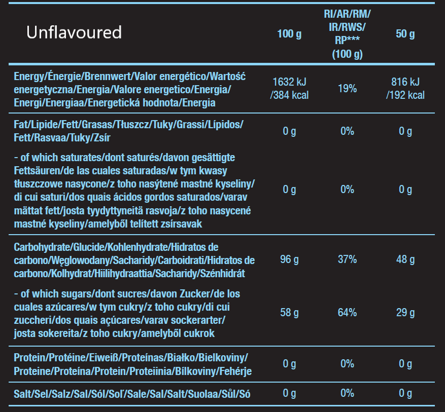 \*此有益效果可透過攝取 每公斤體重 4 克碳水化合物(來源不限)來達成。此攝取量必須在高強度或長時間運動後 4 小時內(最多不超過 6 小時)完成,以恢復正常肌肉功能並補充肝醣儲備。
