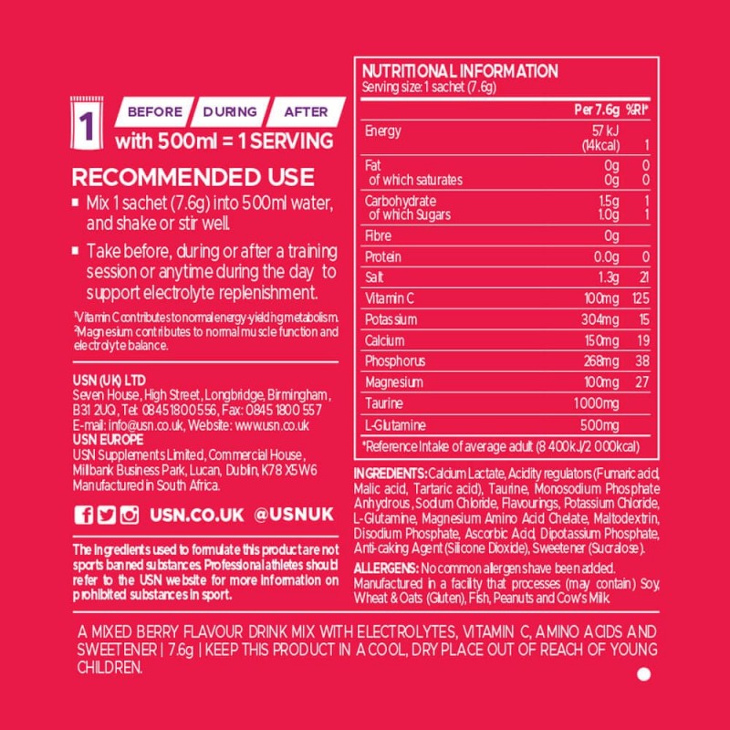 建議用法:將一包7.6克的補充粉加入至500毫升水中,攪拌沖調。建議運動後飲用。