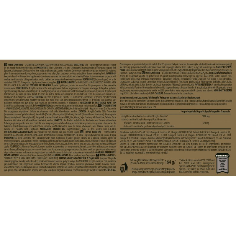 - 每一粒含有1克乙醯左旋肉鹼 (Acetyl L-Carnitine)