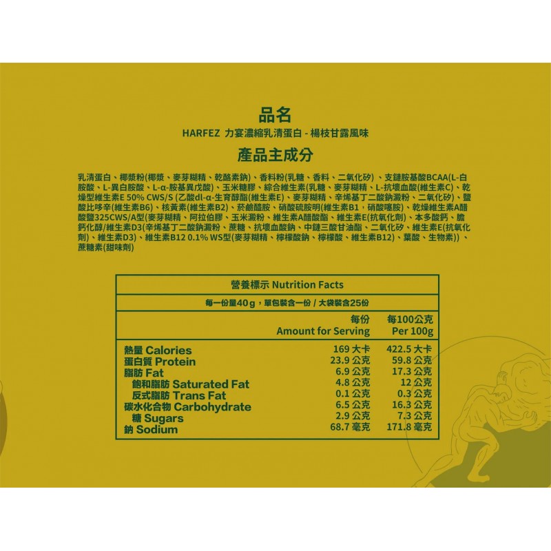 - 每份含有近24克蛋白質,配合肌肉鍛鍊,有助增加身體的肌肉量。