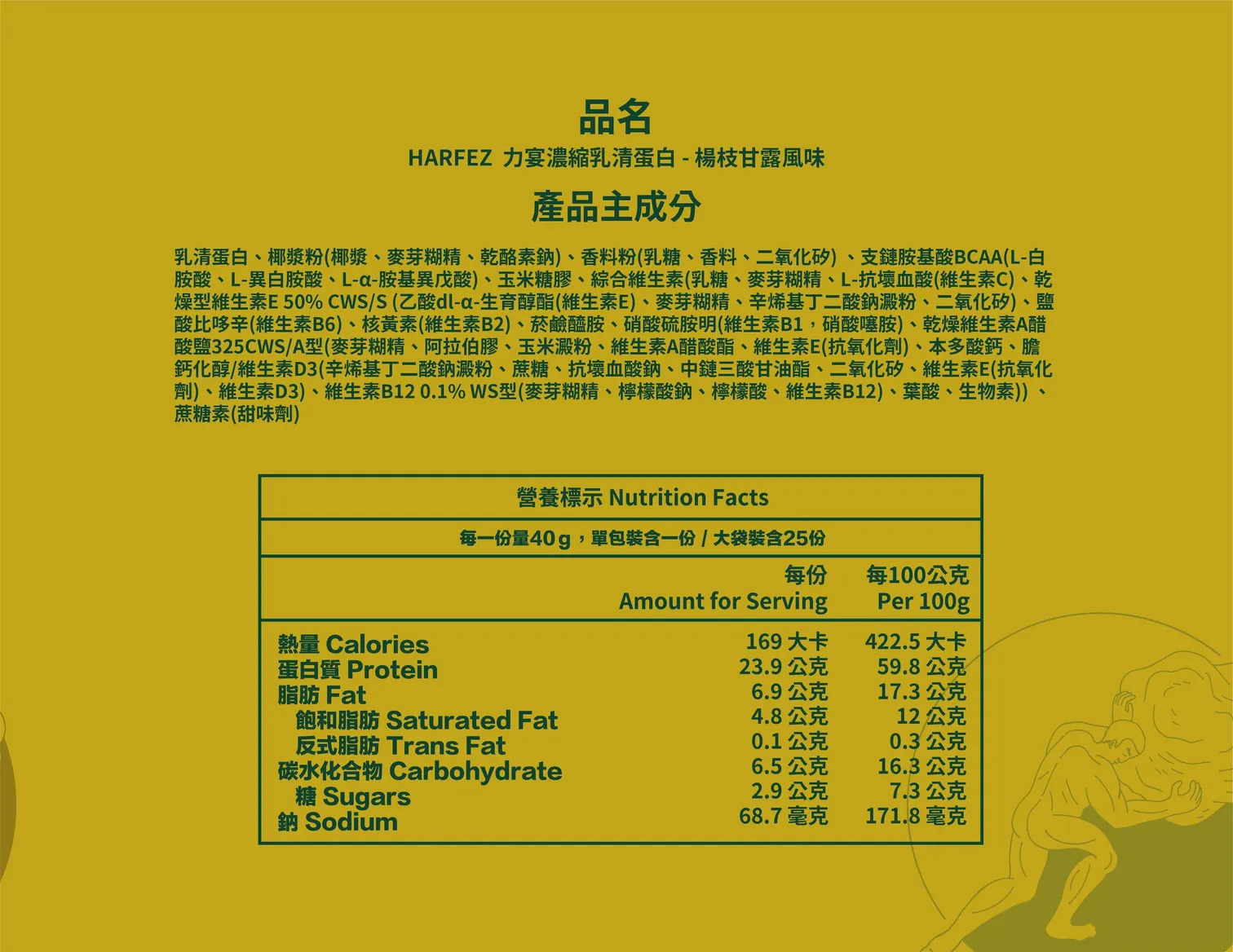 - 當中有6.9克BCAA(支鏈氨基酸),有效避免因長間運動而消耗肌肉。
