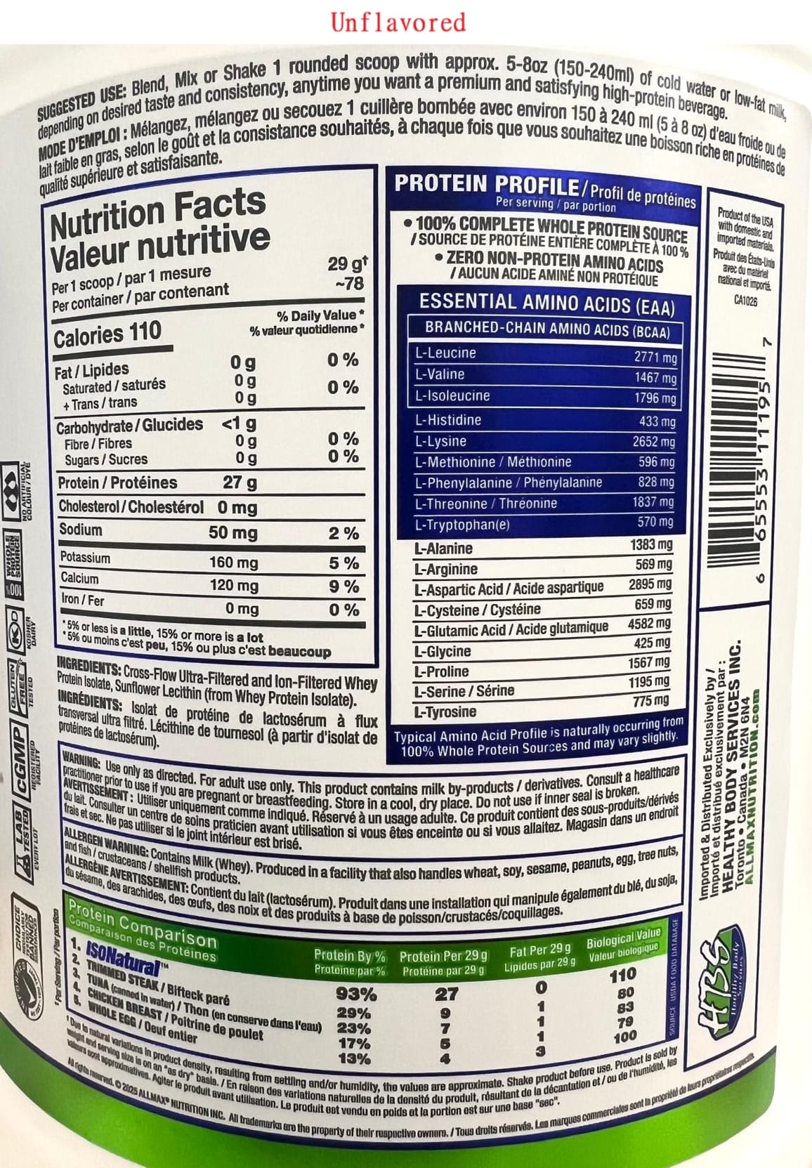 - Non-GMO產品,不含任何基因改造成分,100%天然分離乳清蛋白。