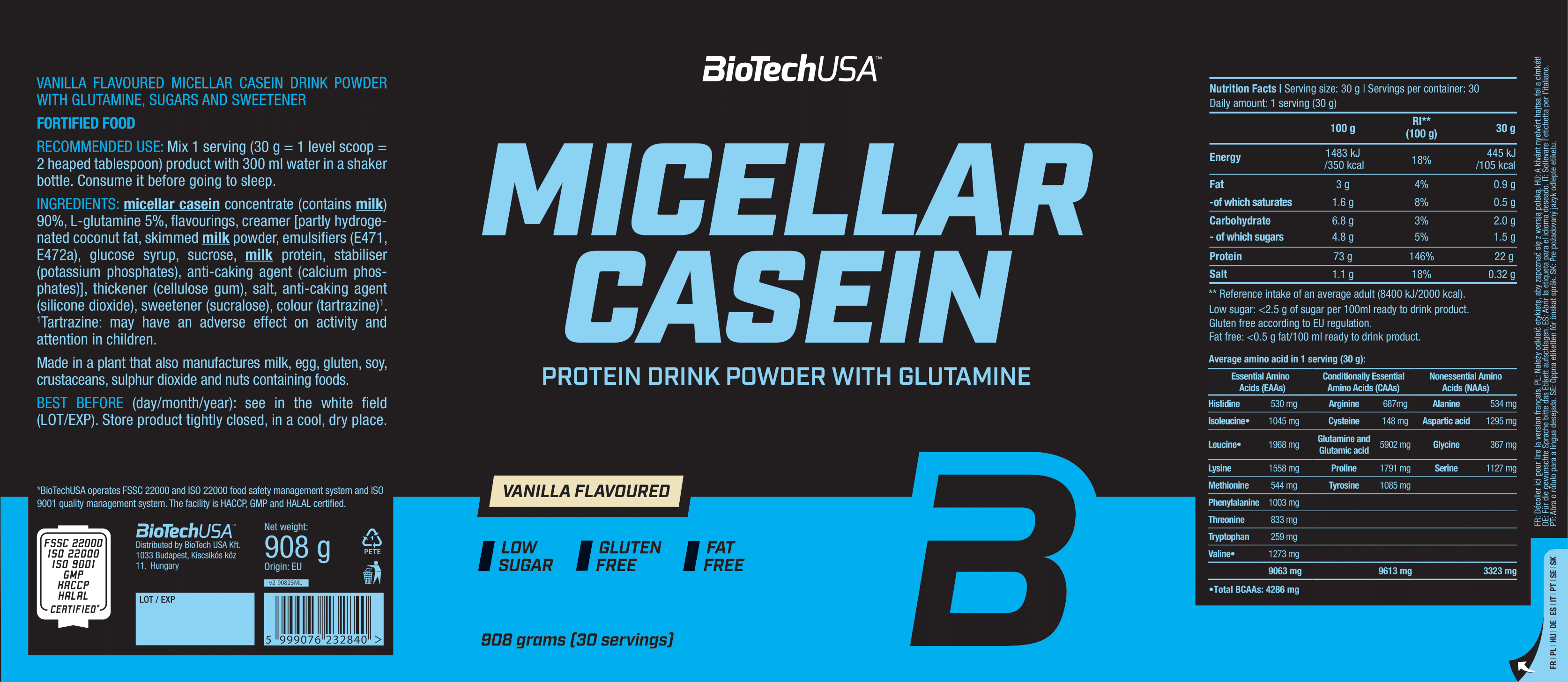 - 添加 5.9 克谷氨酰胺,有助修補肌肉。