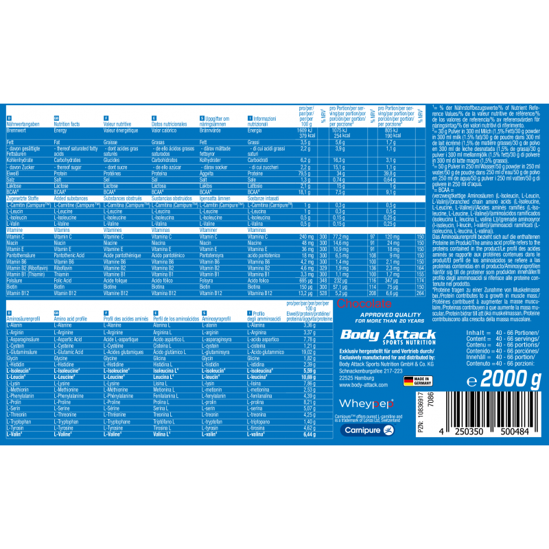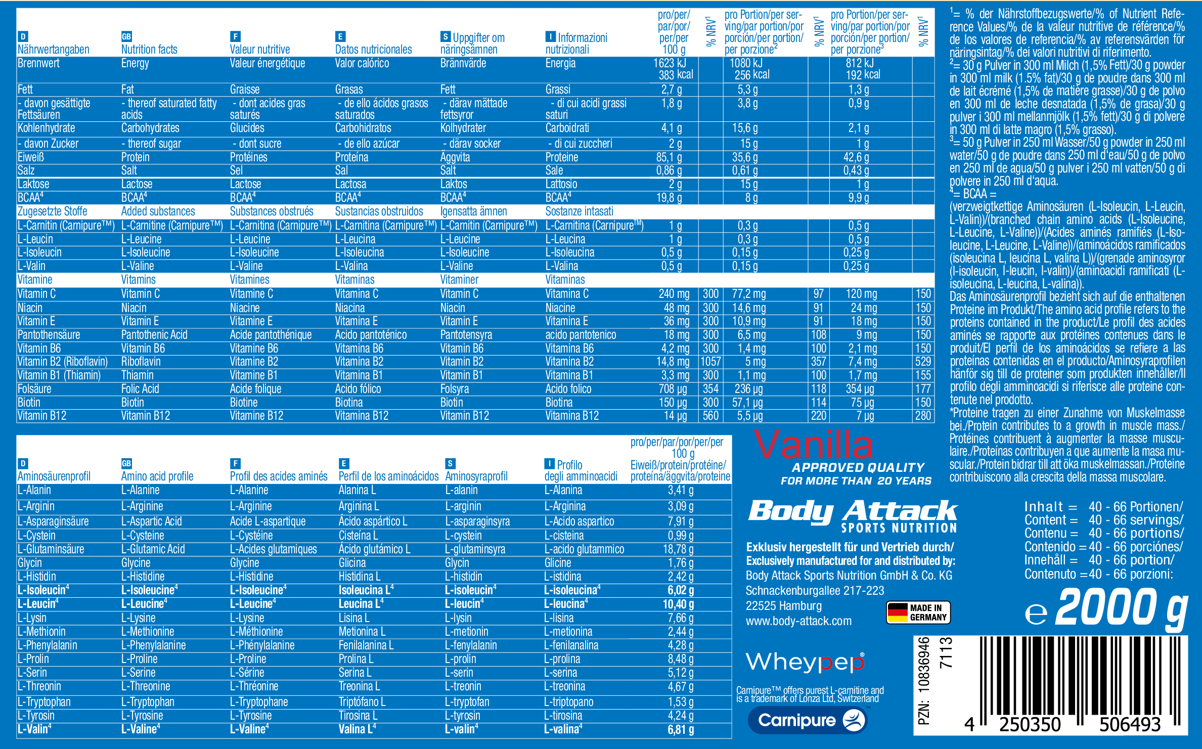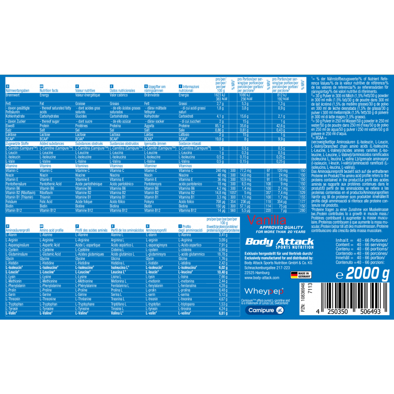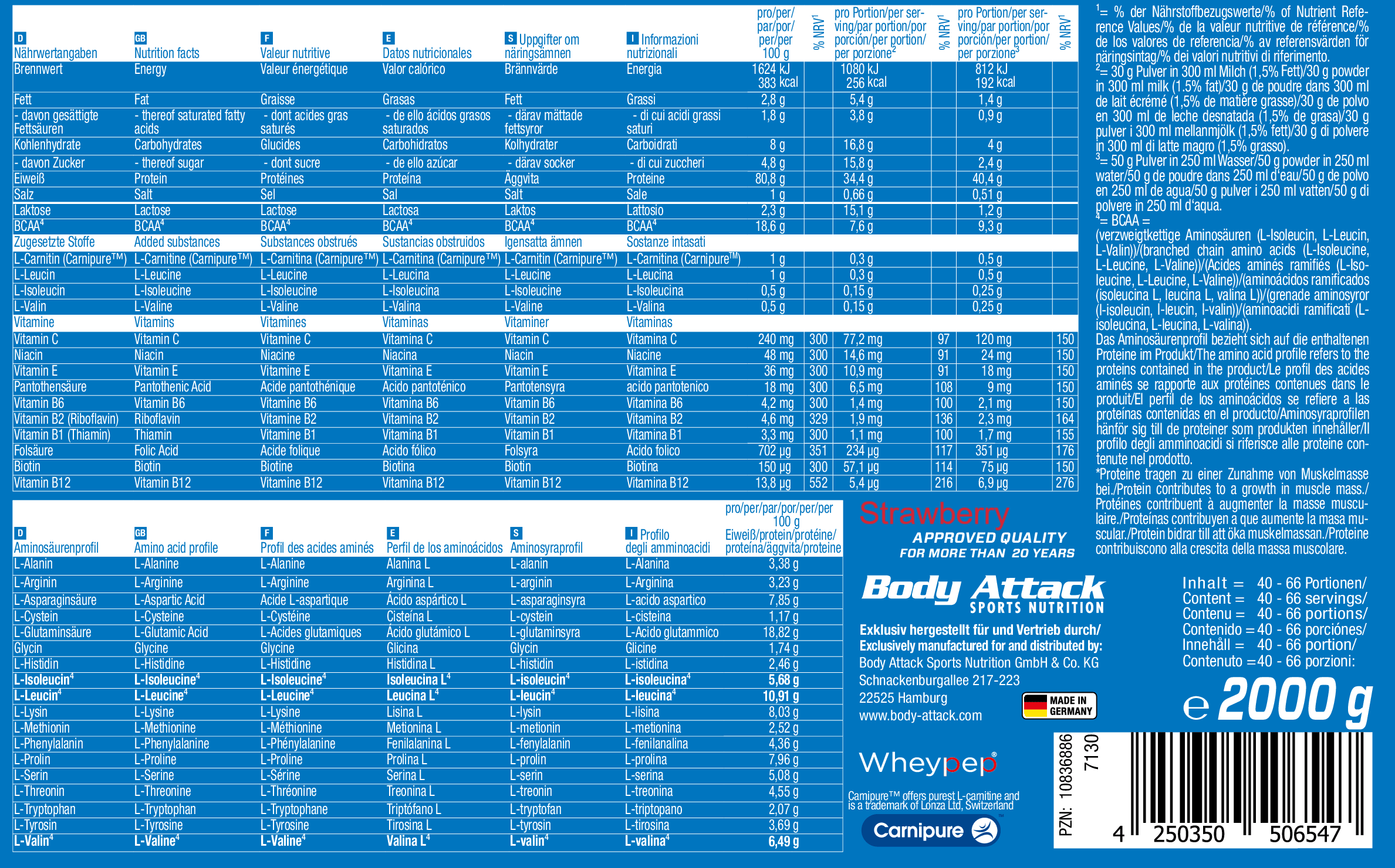 - 專利乳清蛋白Wheypep®水解乳清,保證快速吸收。