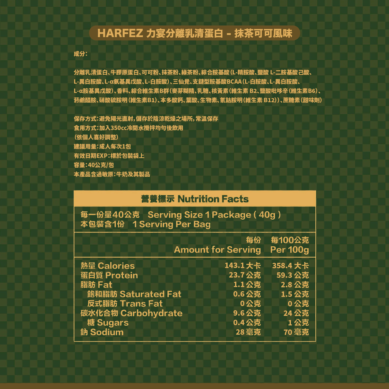 味道: 抹茶可可風味 (40克/1包)