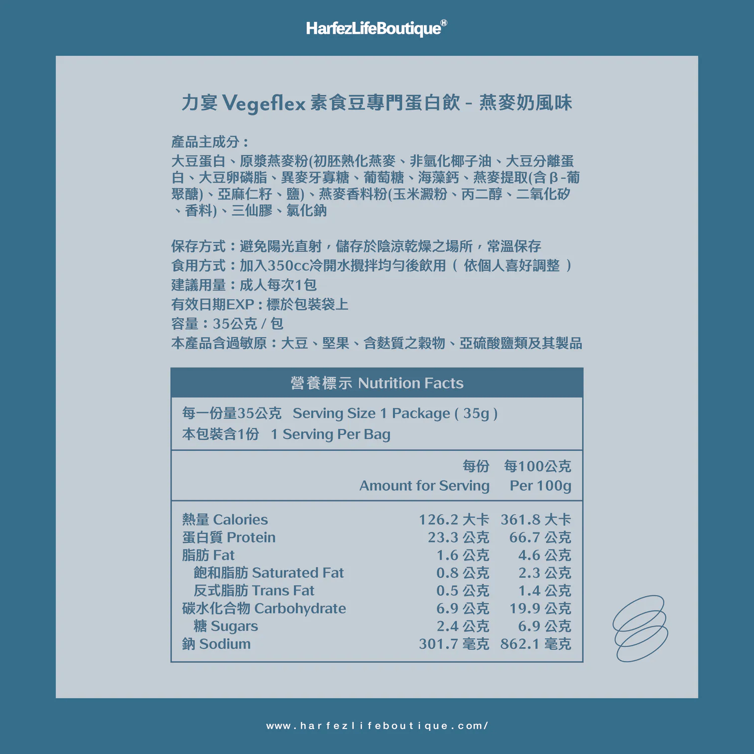 - 每份含有23克蛋白質
