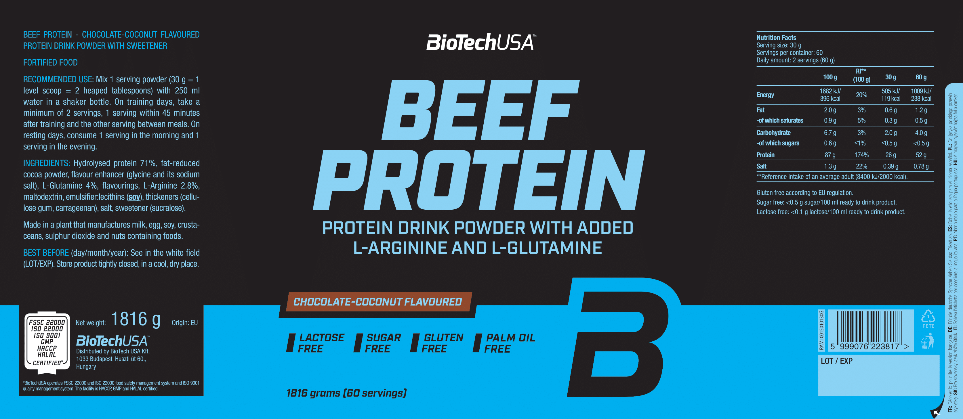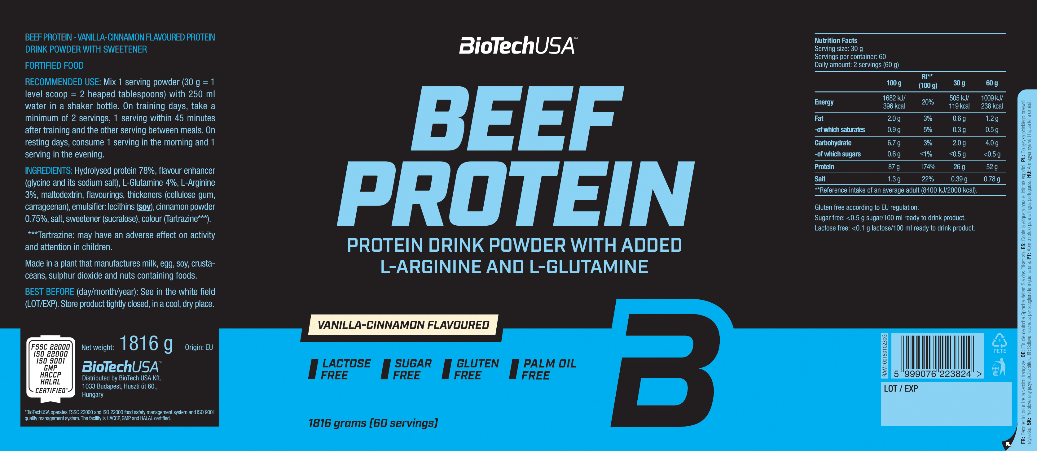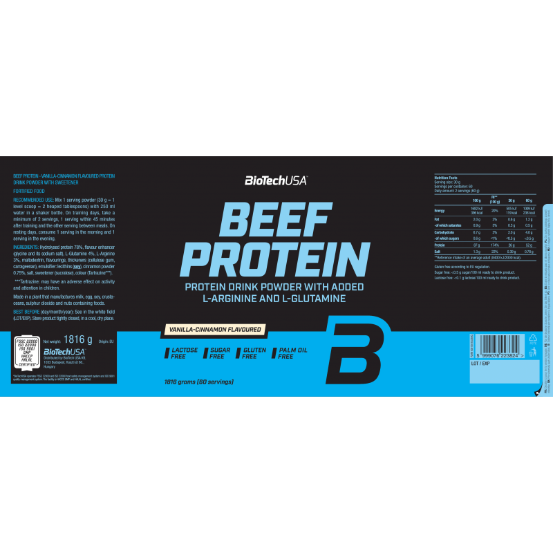 BioTechUSA 牛肉蛋白是一款由牛肉提取的水解蛋白肽配方,並特別添加了氨基酸。與傳統低脂牛肉來源(如牛排)相比,牛肉蛋白粉更容易消化、吸收效率更高,且作為動物蛋白,具有極高的生物價值。因此,它是運動員、健身愛好者,以及任何追求純淨且高效蛋白補充人士的理想選擇。