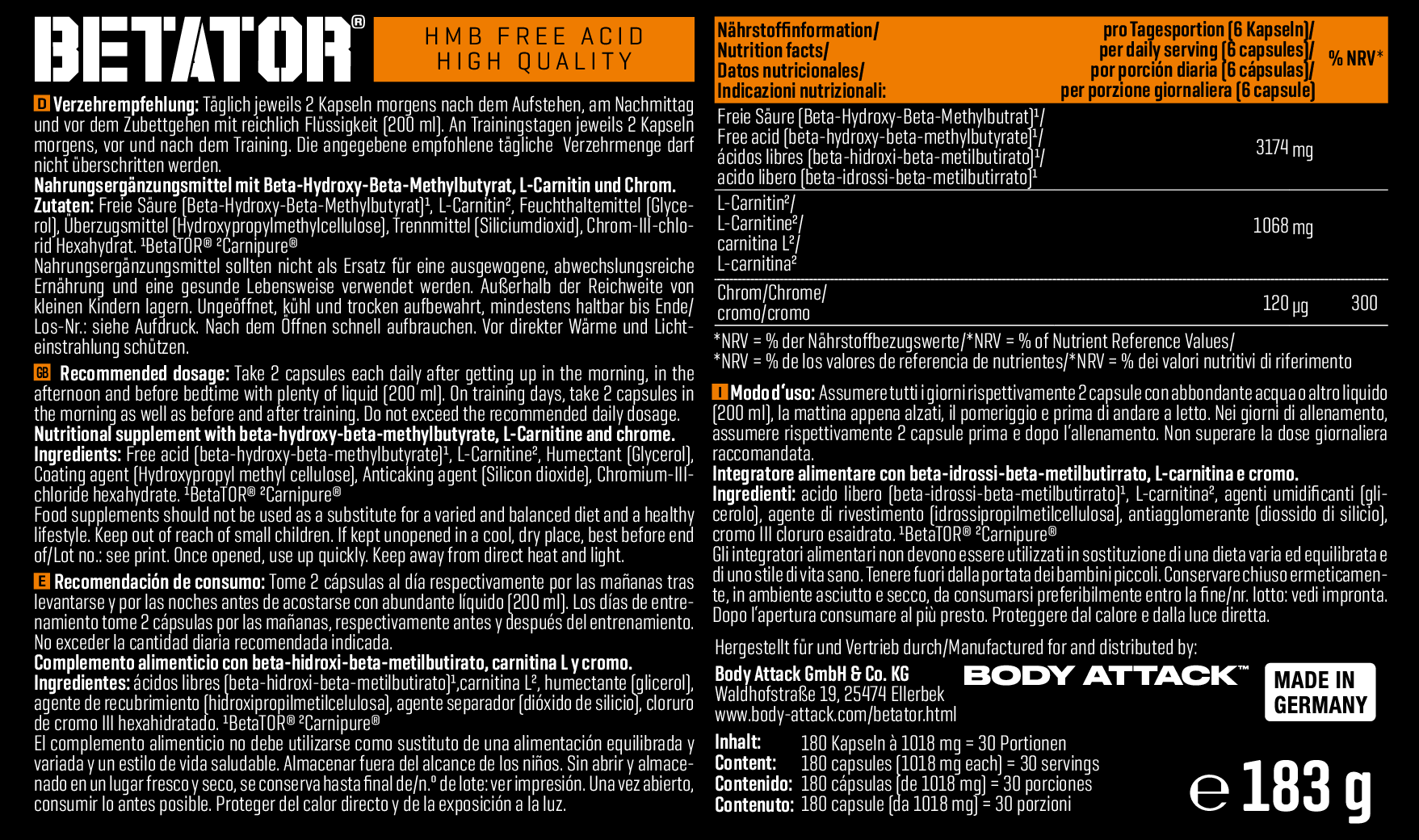 - 加入專利的Carnipure™左旋肉鹼、有助增加能量和控制體重