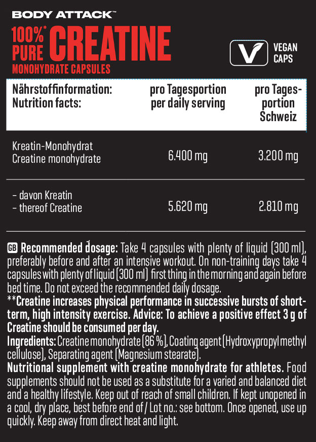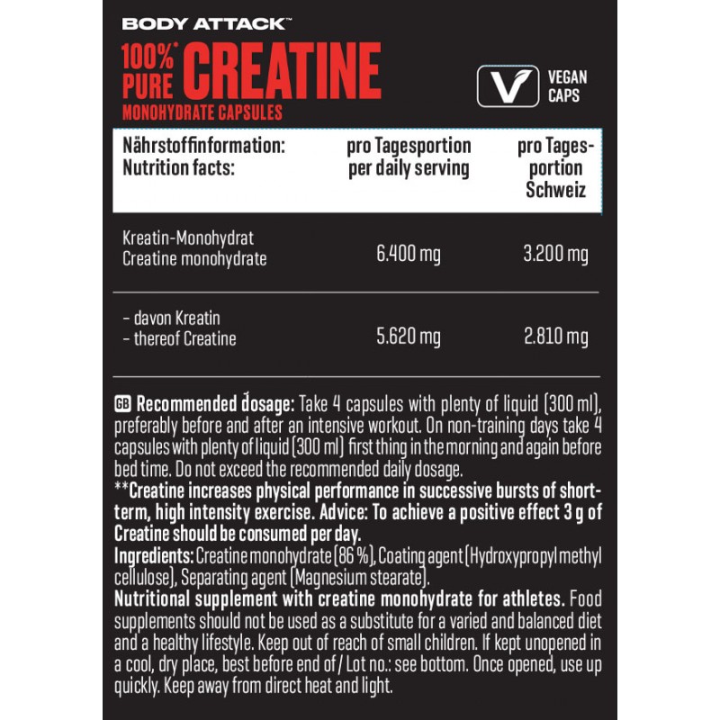 - 每4粒提供高達3200毫克肌酸一水合物。