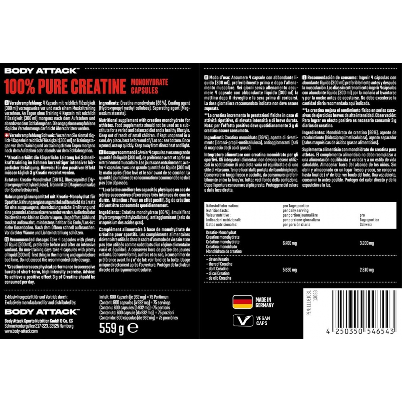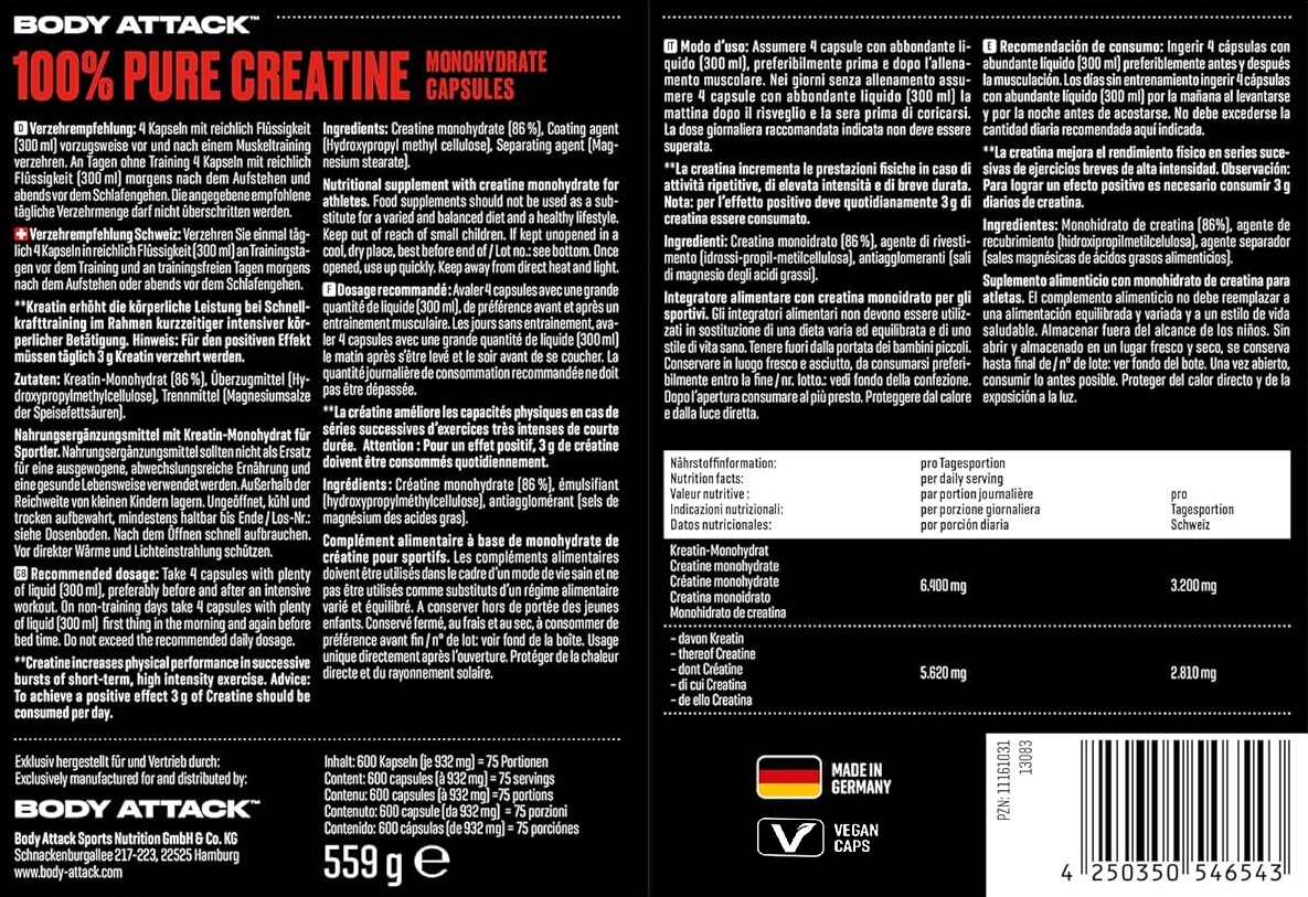 - 每4粒提供高達3200毫克肌酸一水合物。