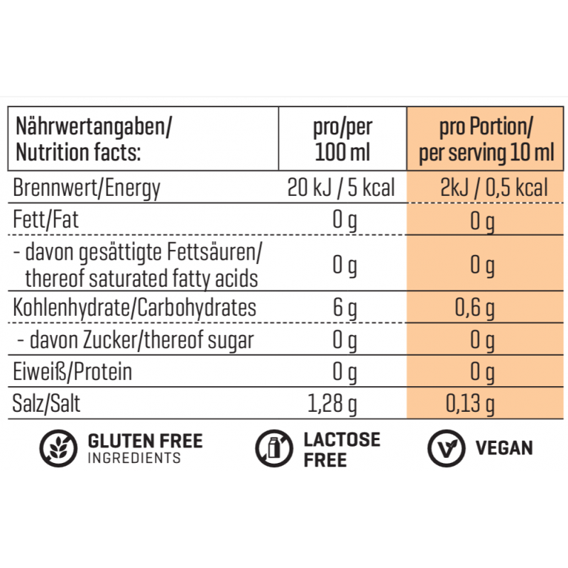 美味的 BODY ATTACK 蜂蜜芥末醬是增強沙拉風味的理想選擇,您可以盡情享受它而無需感到內疚,因為它不含糖或脂肪。 當您吃一份(10 毫升)時,您僅消耗 1 kcal 熱量。