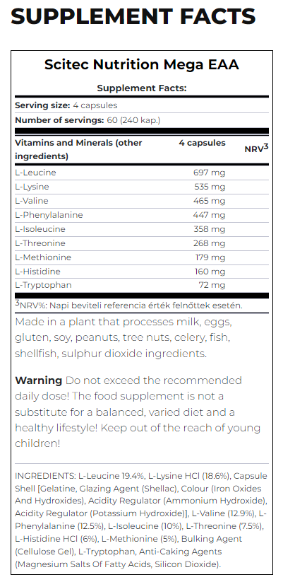 - 每份含有3200毫克必需氨基酸 (EAA) 。