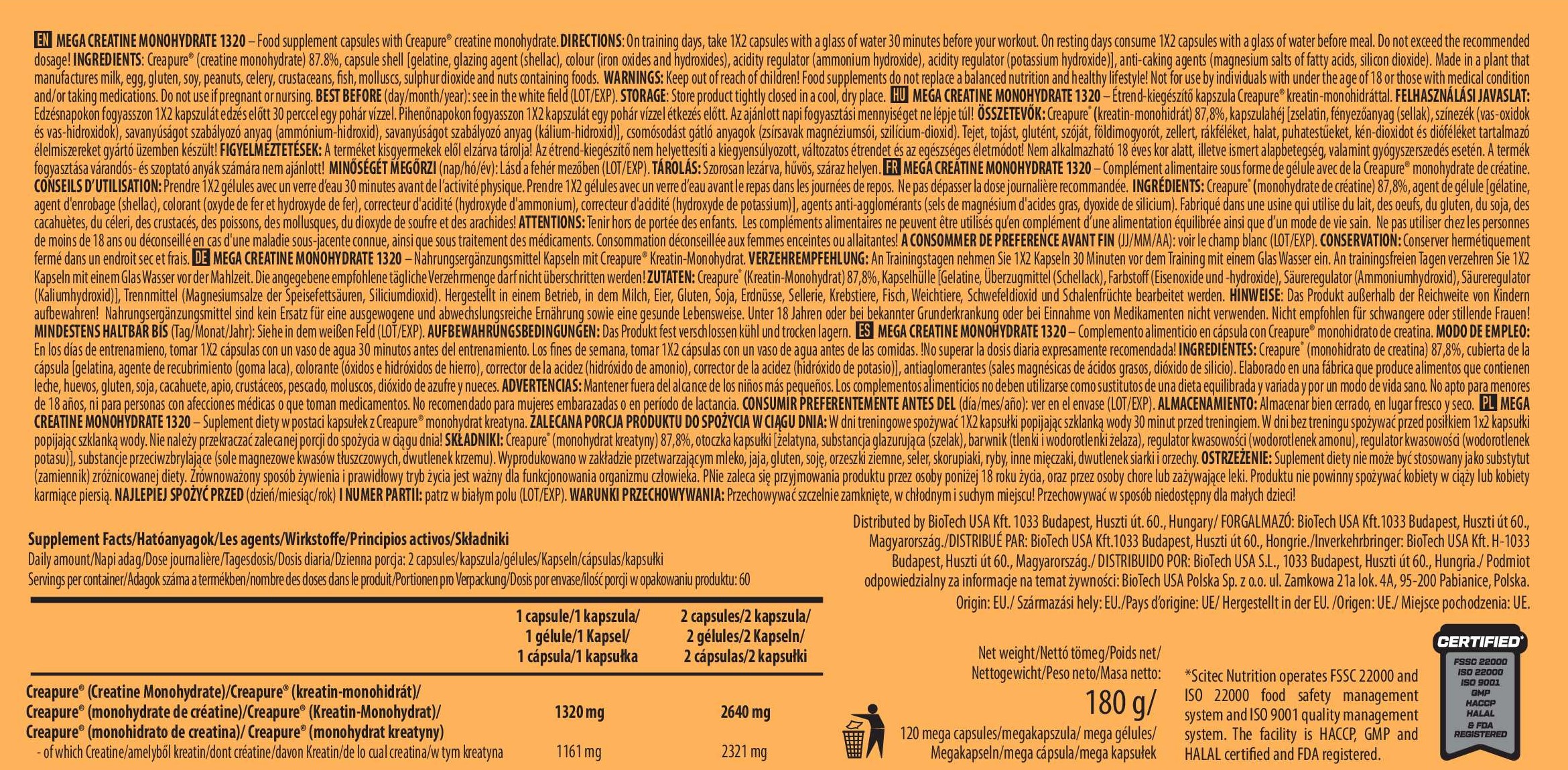 - 原料上使用了市面上最好、最可靠的品牌之一Creapure®,更被納入科隆名單®中,並通過違禁藥物測試,使運動員更為安心。