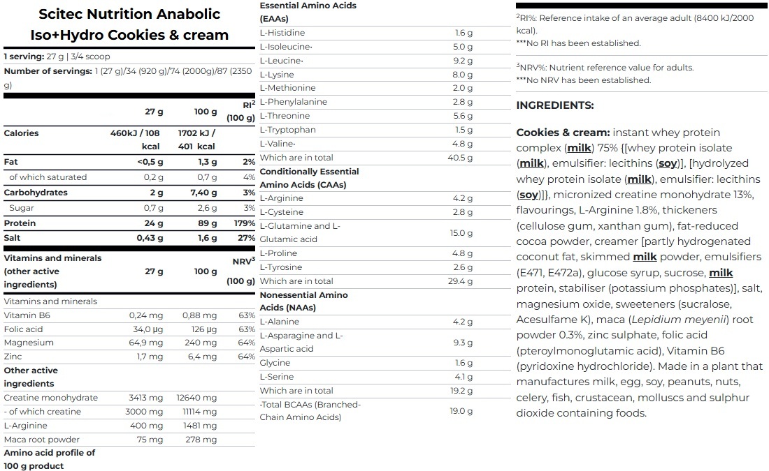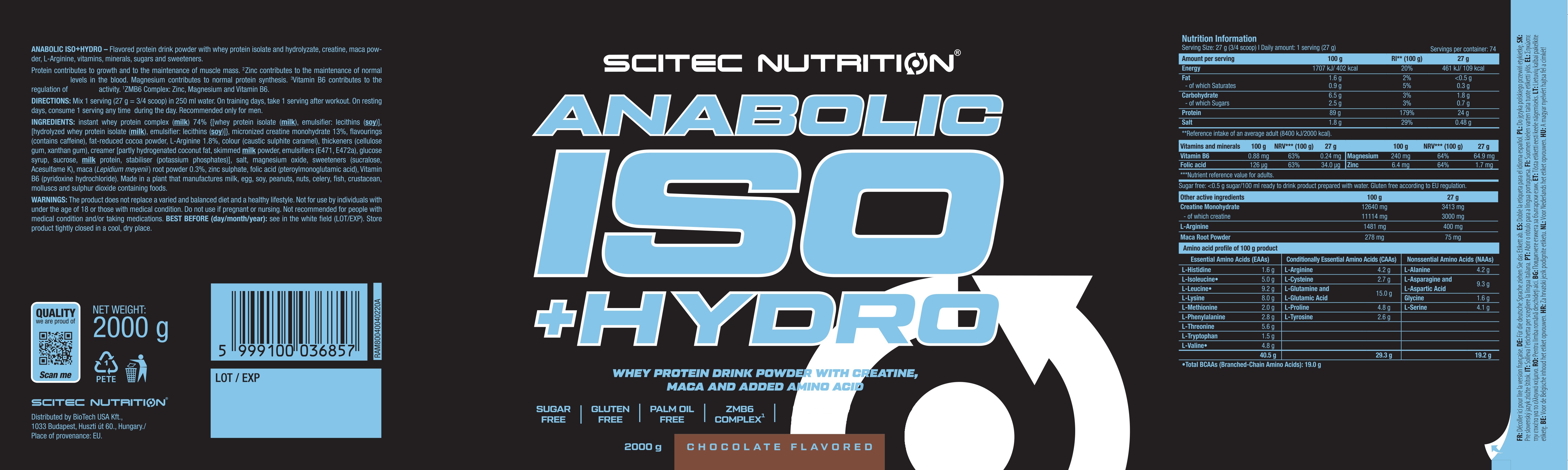 作為歐洲最暢銷運動營養品牌Scitec Nutrition旗下最頂級蛋白粉系列,Scitec Anabolic Iso+Hydro (黑桶) 混合了以先進技術製造的分離及水解乳清蛋白粉,針對肌肉合成代謝,添加5大關鍵營養素:鎂、鋅、維他命B6、肌酸、瑪卡萃取物。蛋白質含量接近9成,而且粉質幼細,更易被人體吸收,為肌肉提供最優質的蛋白質。