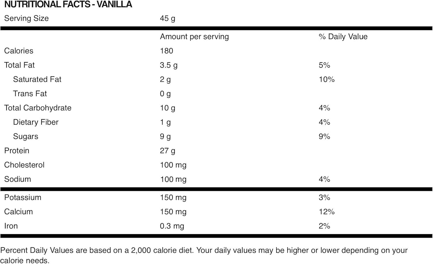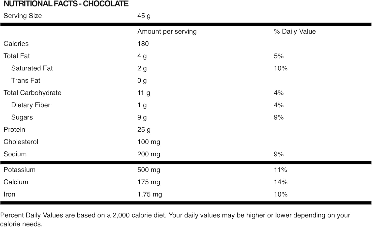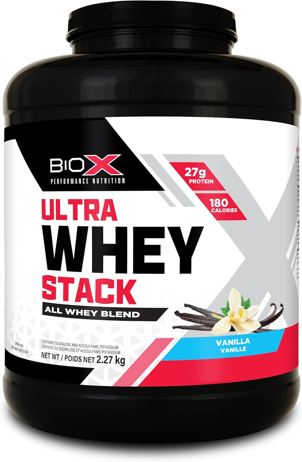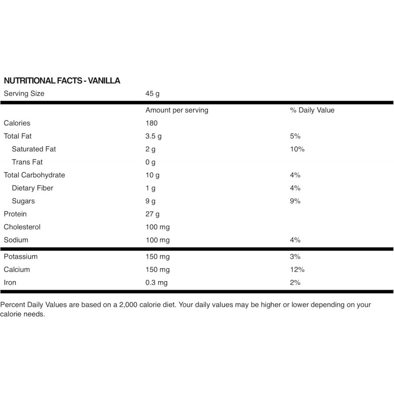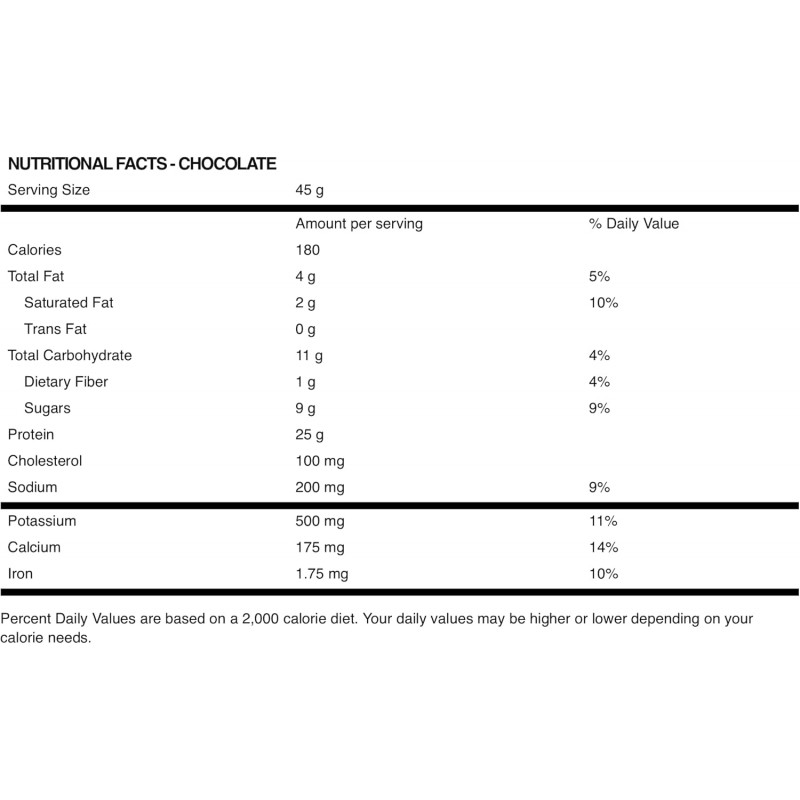 - 每份含有 25-27 克來自混合乳清蛋白質 (雲呢拿25克, 朱古力27克)