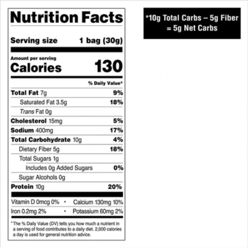- 每包只含 5 克碳水化合物