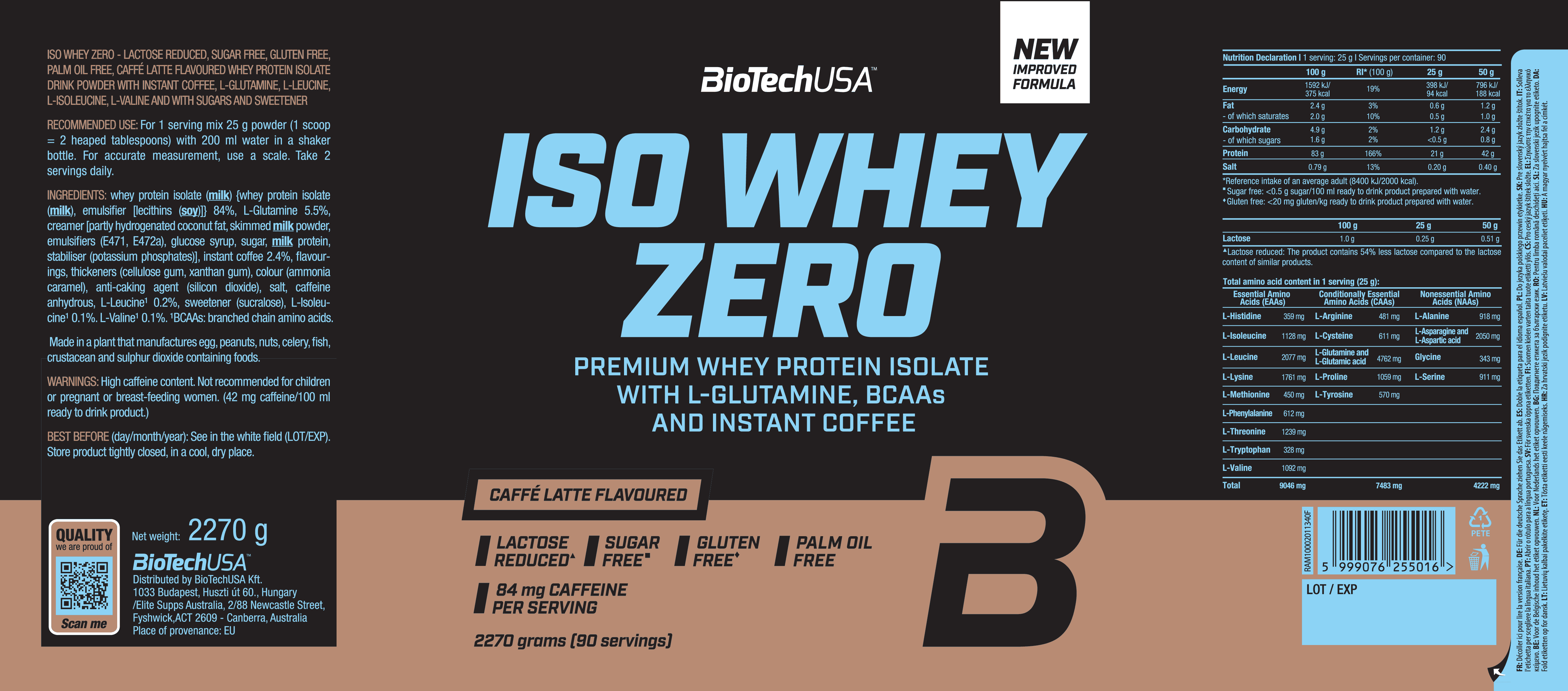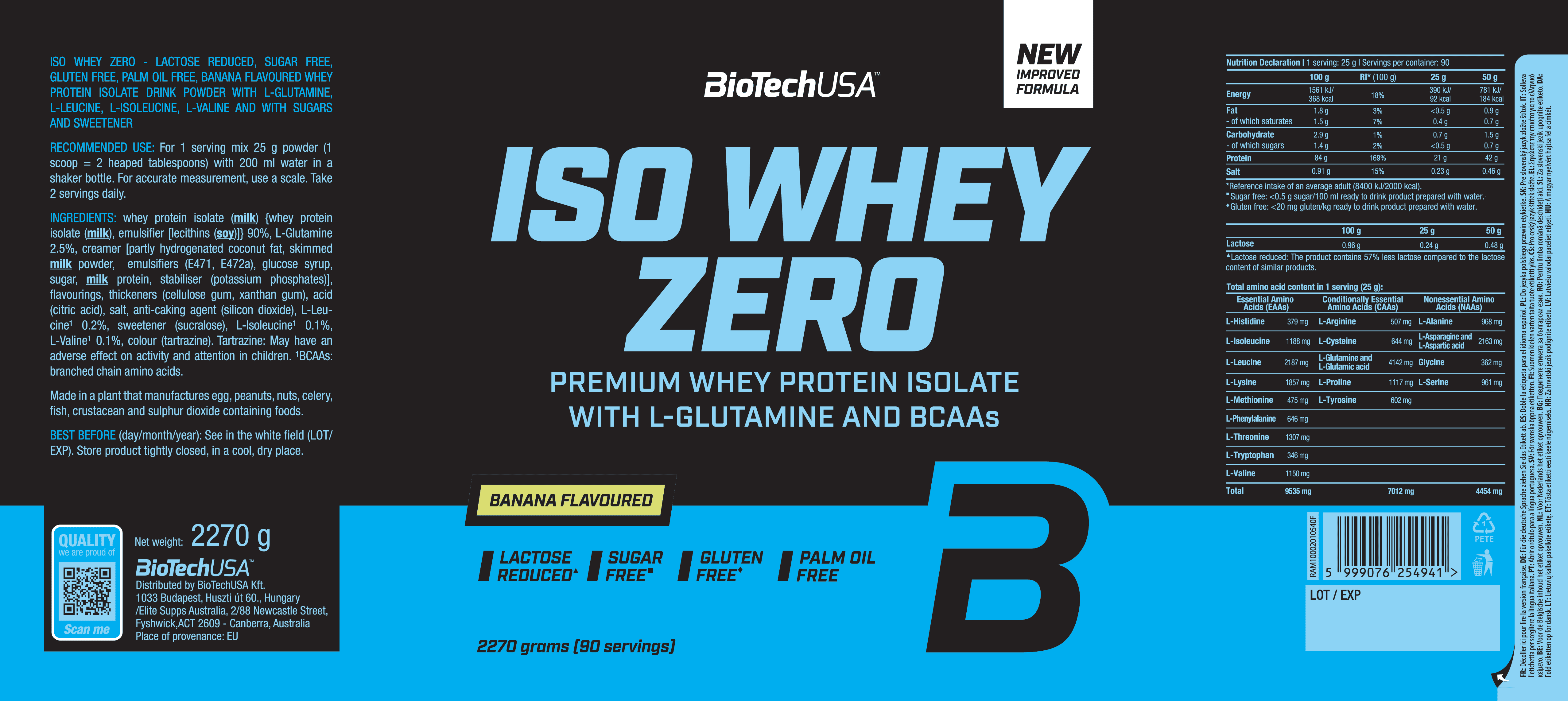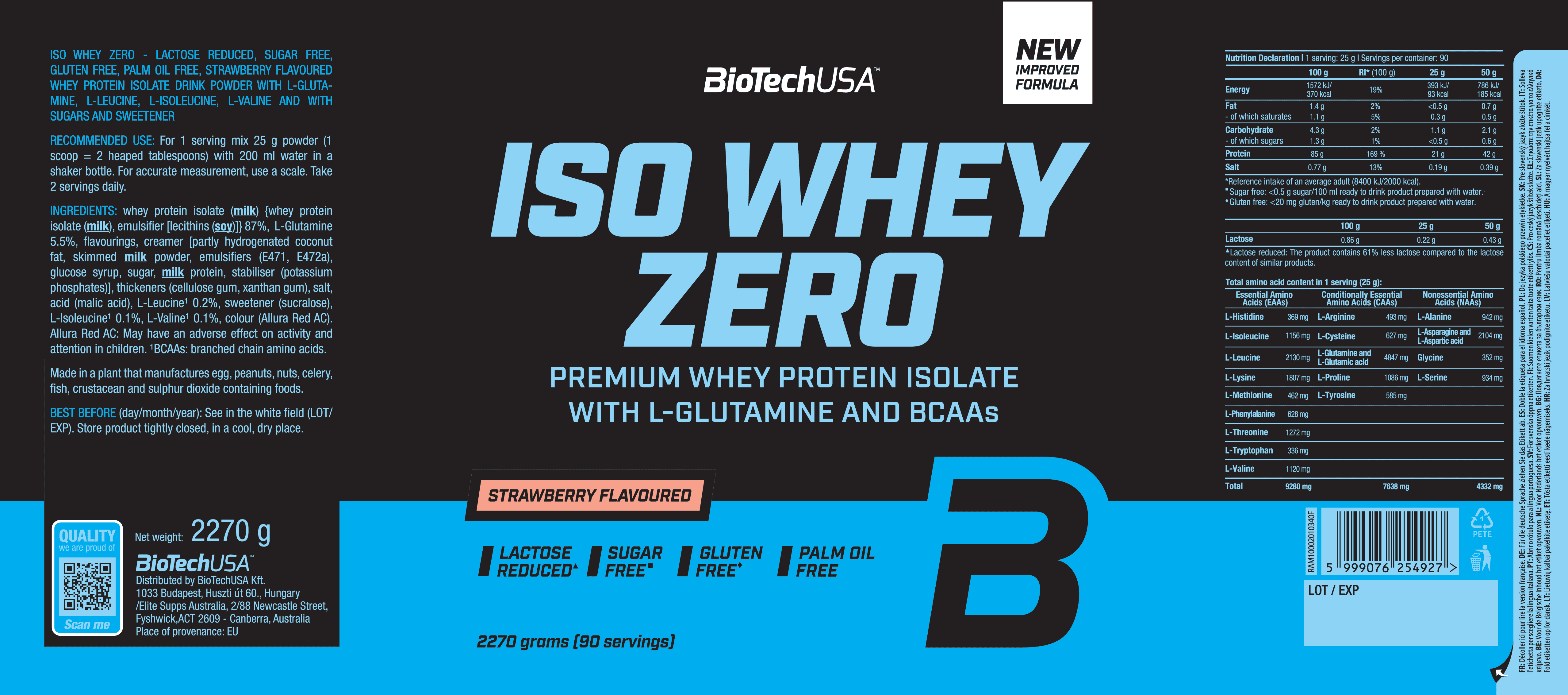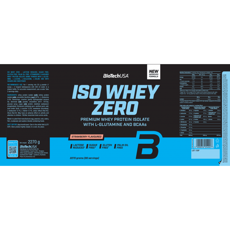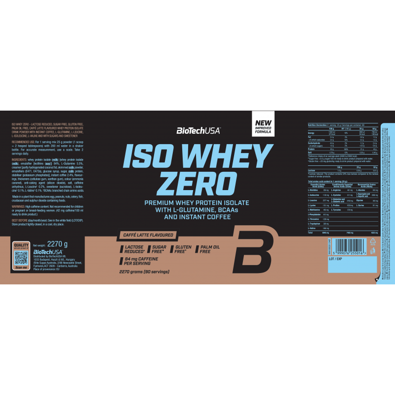 BioTechUSA Iso Whey Zero是一款優質分離乳清蛋白粉,專為運動員、健身愛好者,以及任何追求純淨、高品質蛋白質補充的人而設。低乳糖含量、極低糖分,並額外添加 BCAA(支鏈氨基酸)與谷氨酰胺(L-Glutamine),為肌肉生長、恢復及整體表現提供卓越的營養支持。