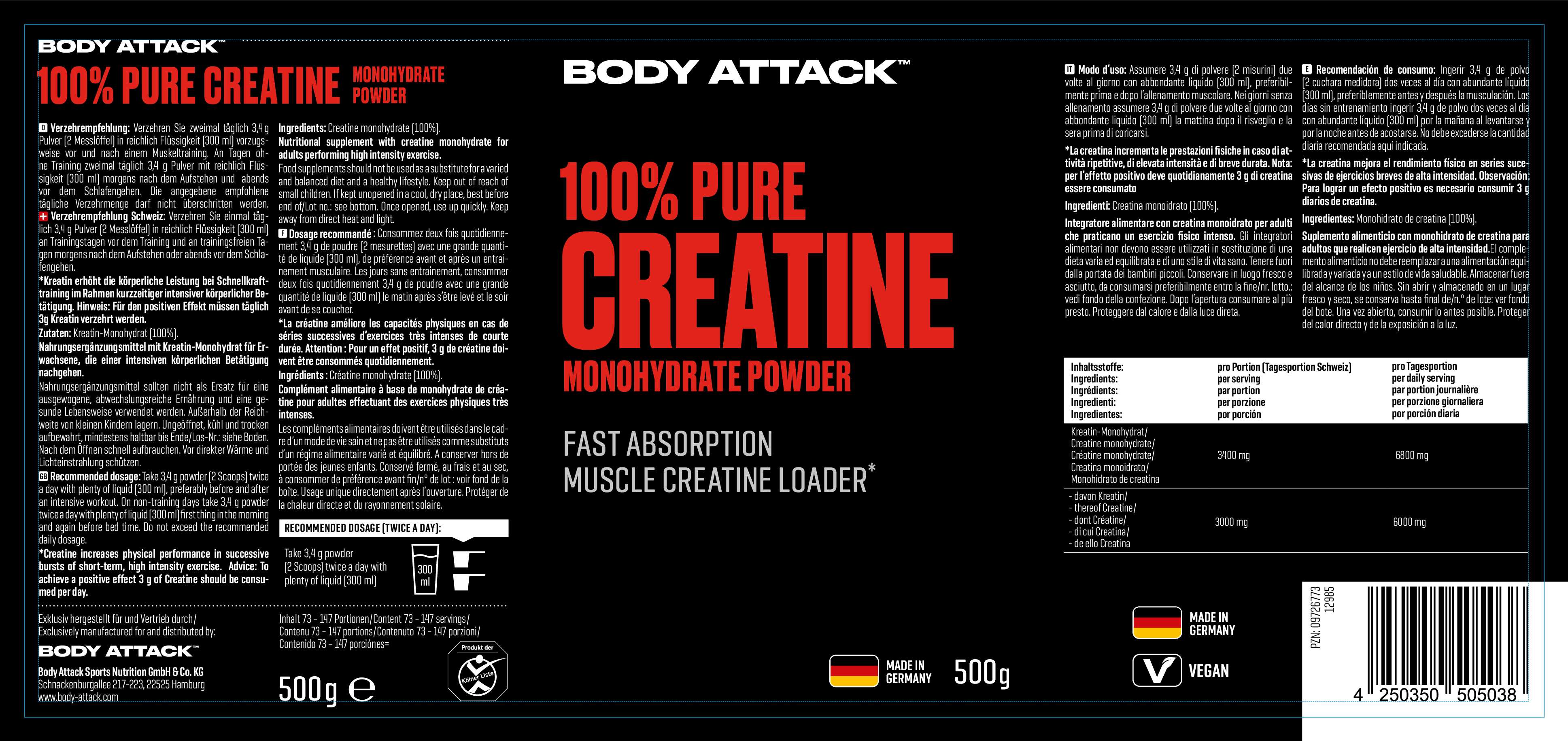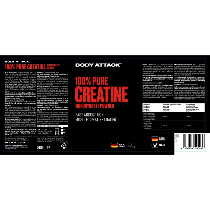 - 以微細粉末形式提供100%肌酸一水合物