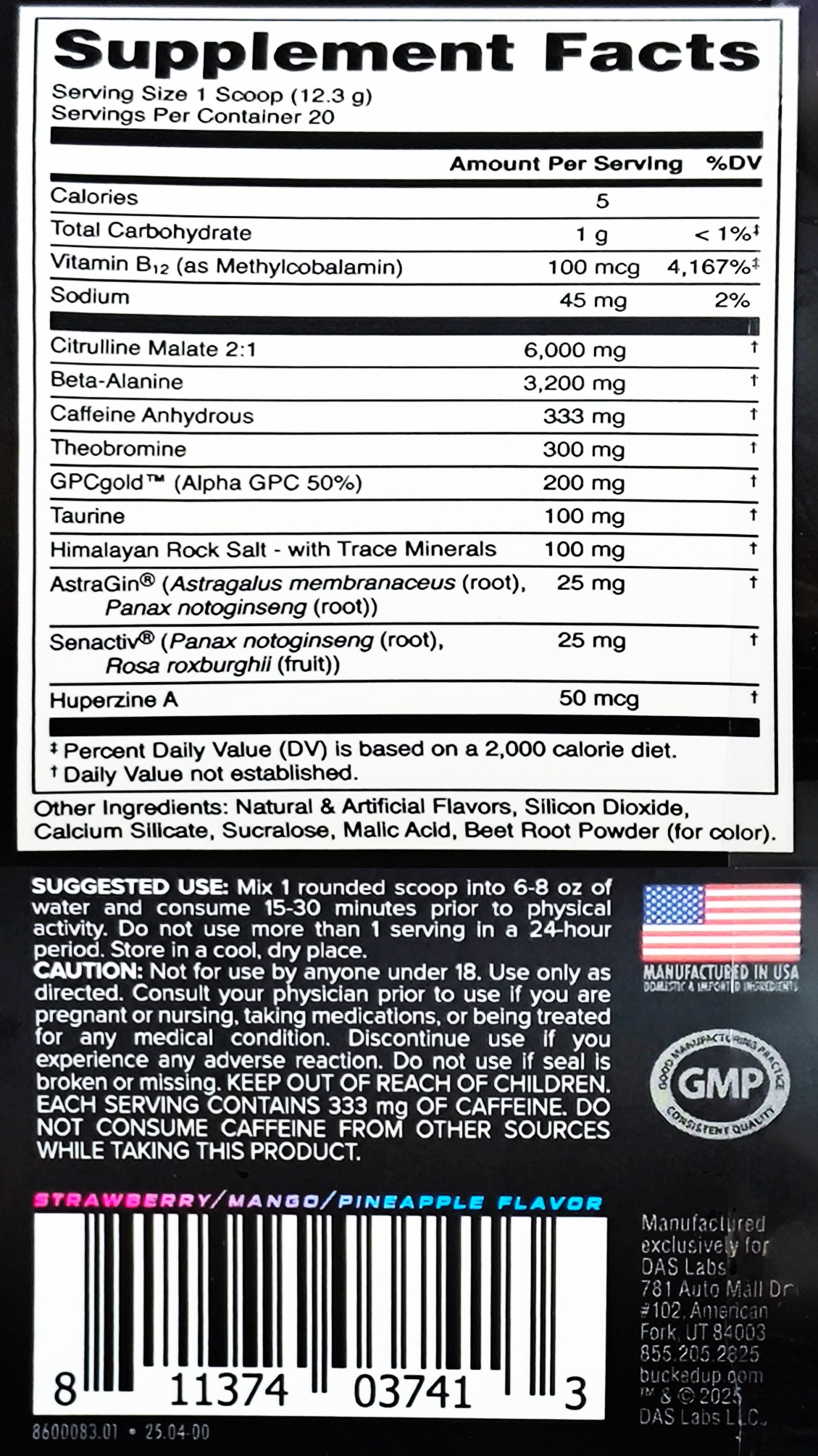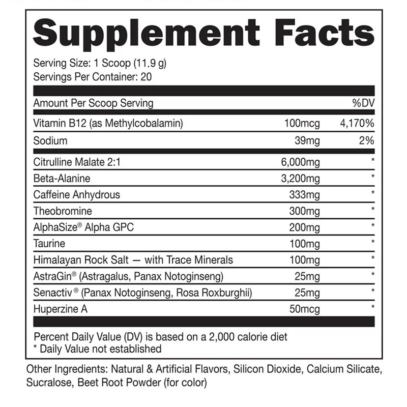 - 含6克瓜氨酸和3.2克丙氨酸 ,刺激身體一氧化氮量,延長訓練時間