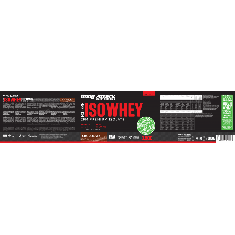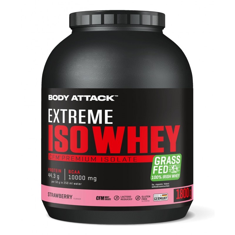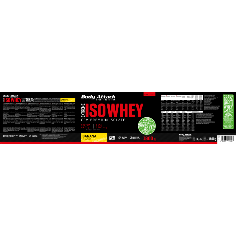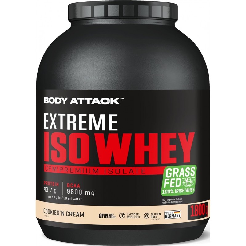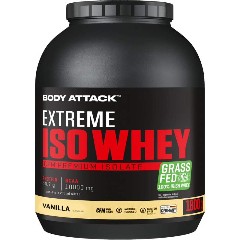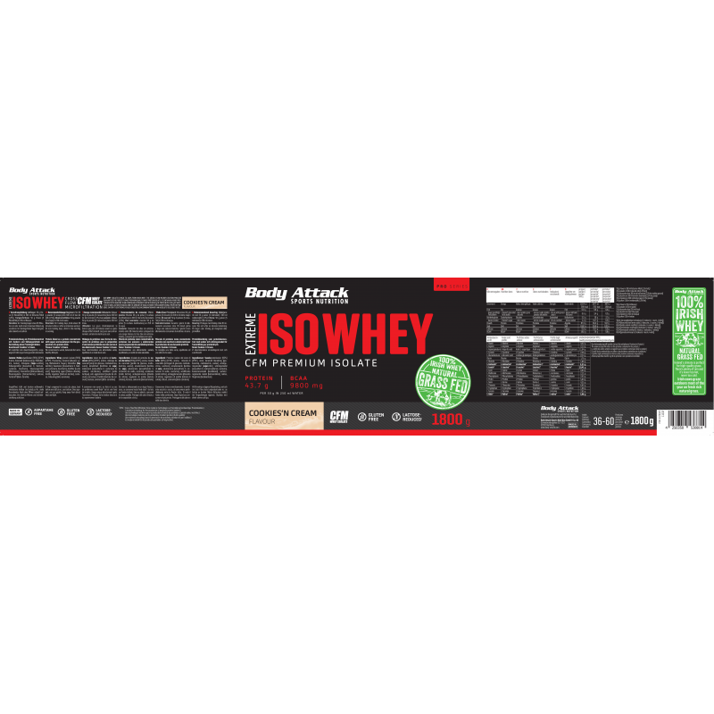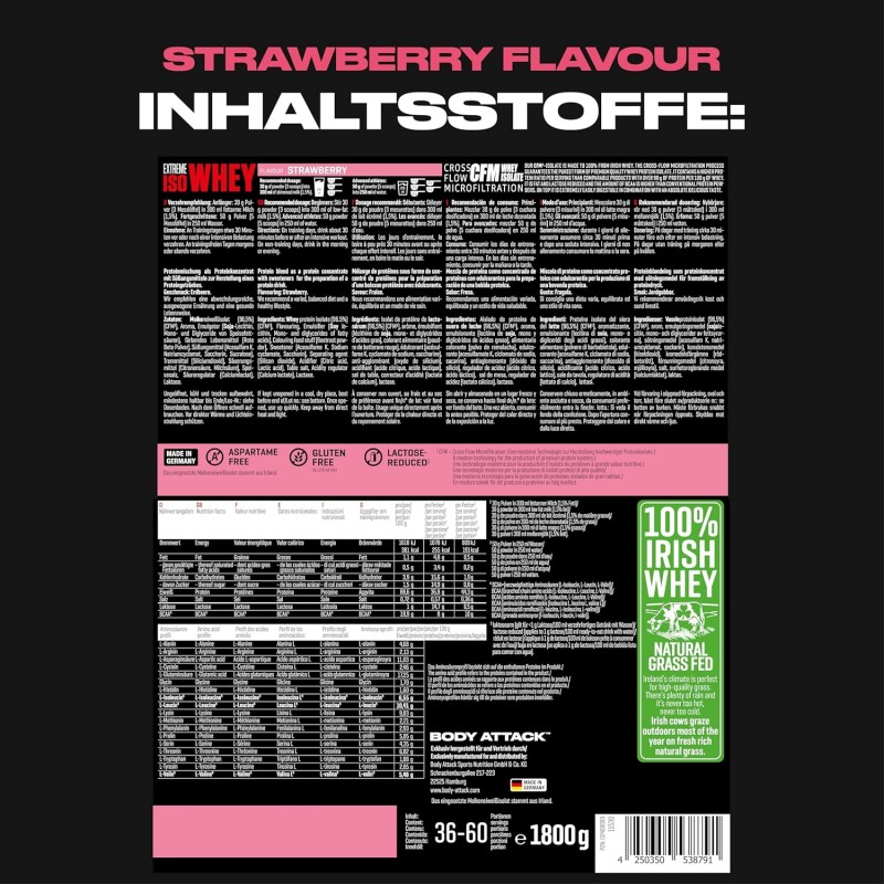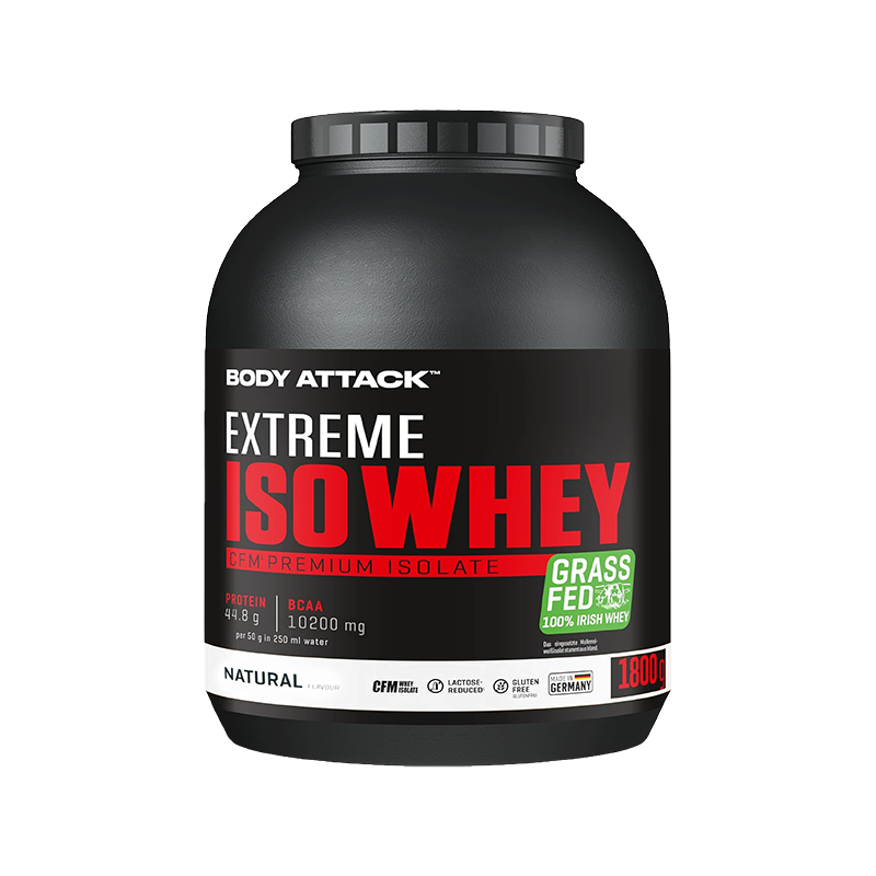 採用來自愛爾蘭真正牧場、草飼牛奶源的乳清蛋白,製造出最優質的蛋白奶昔。Body Attack Extreme Iso Whey 乳清蛋白粉的分離乳清比例超過 90%,製程溫和、低乳糖、不含阿斯巴甜,且極易消化吸收。