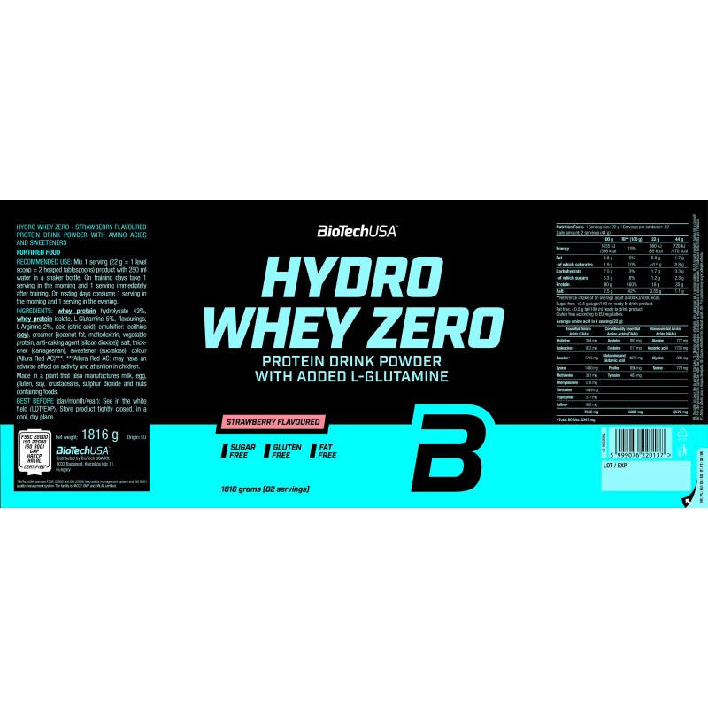 - 每份含高達80%蛋白質,主要由水解乳清蛋白和分離乳清蛋白而成,為身體提供極高含量的優質蛋白質來源。
