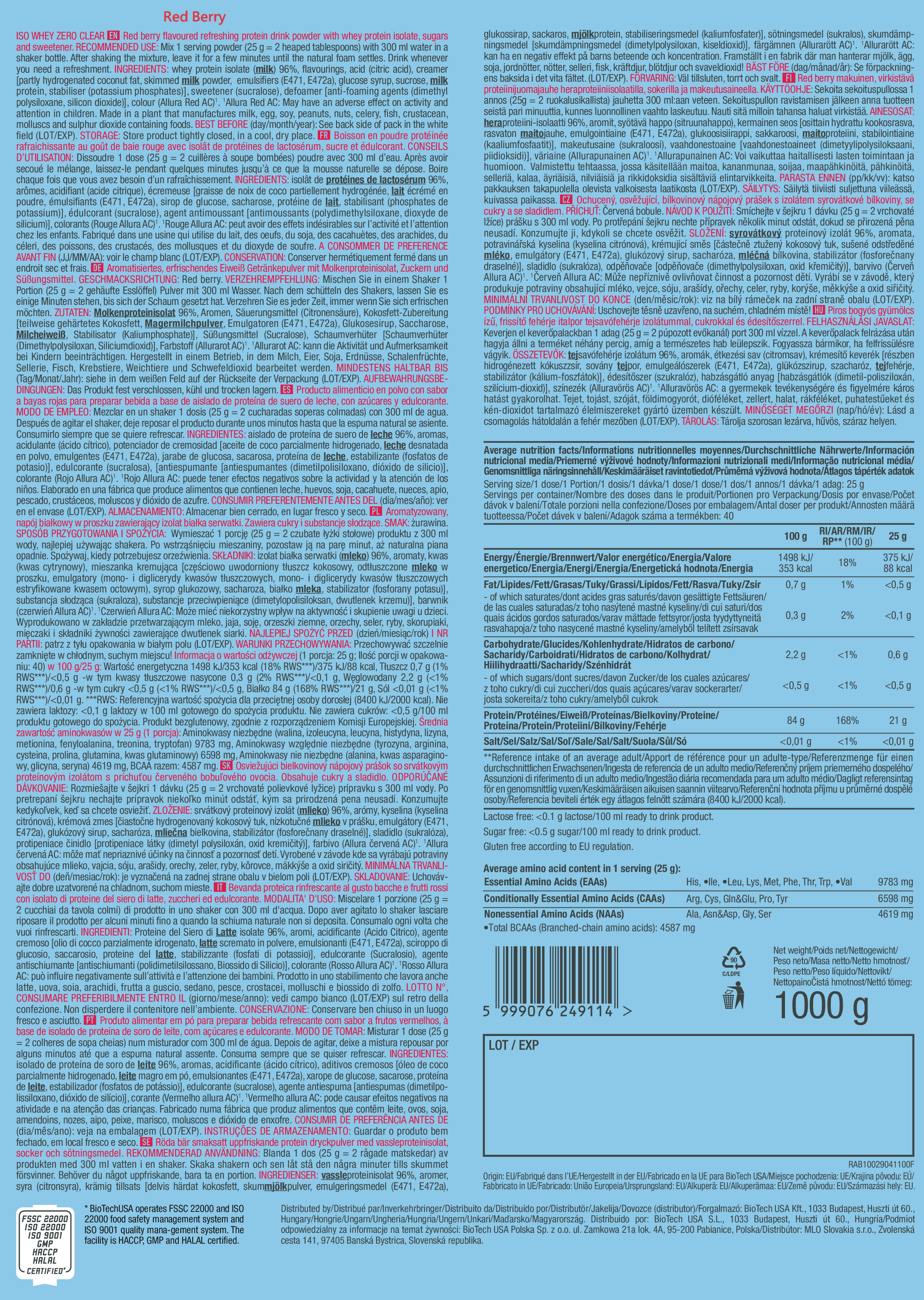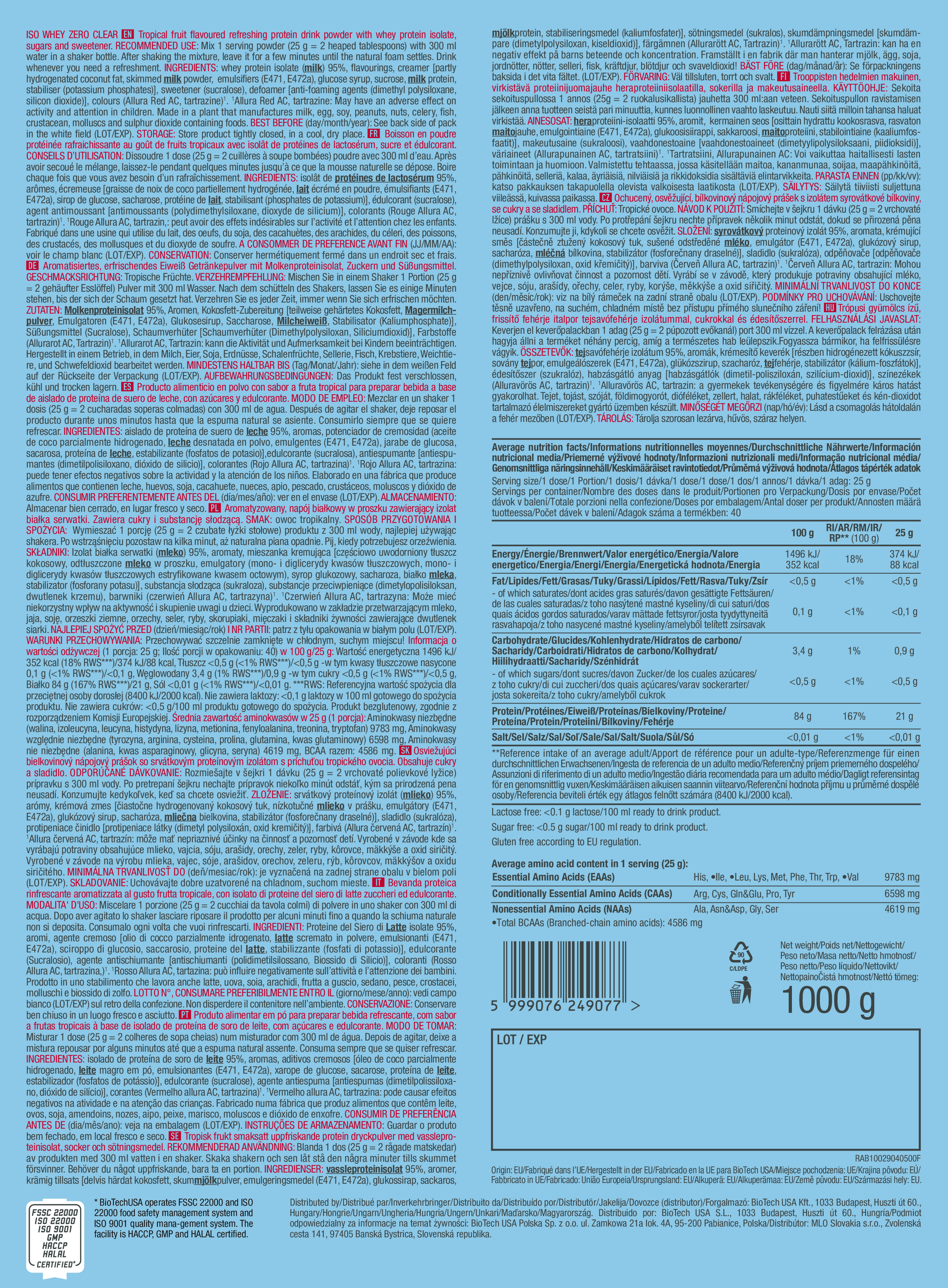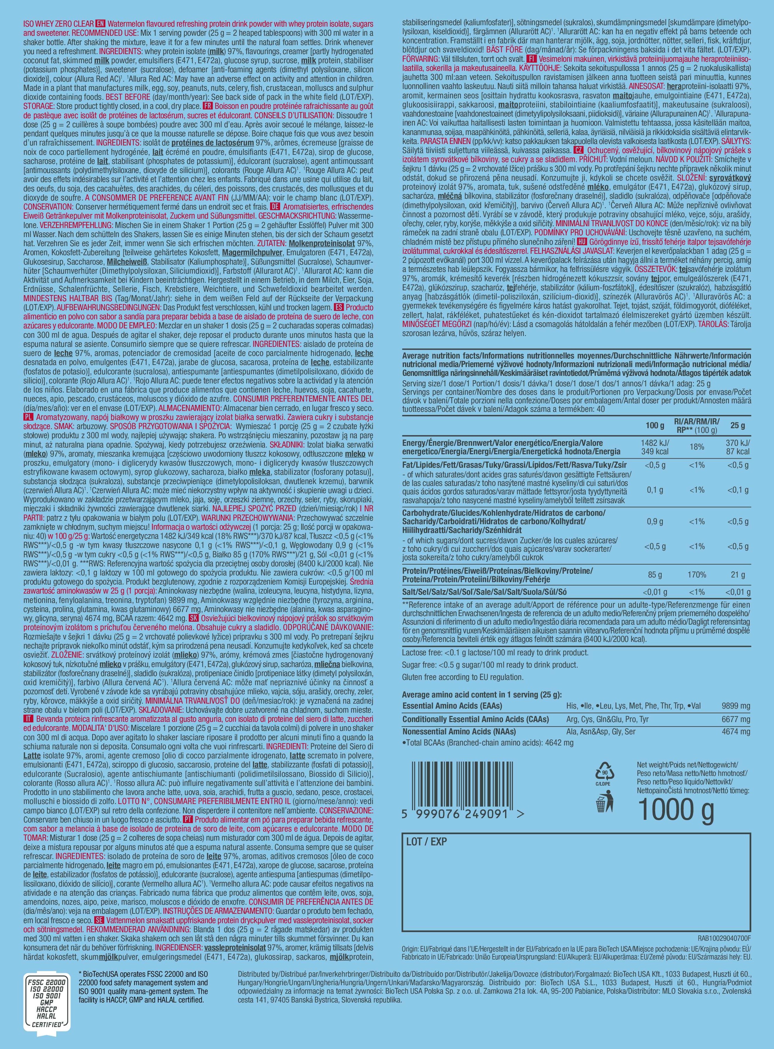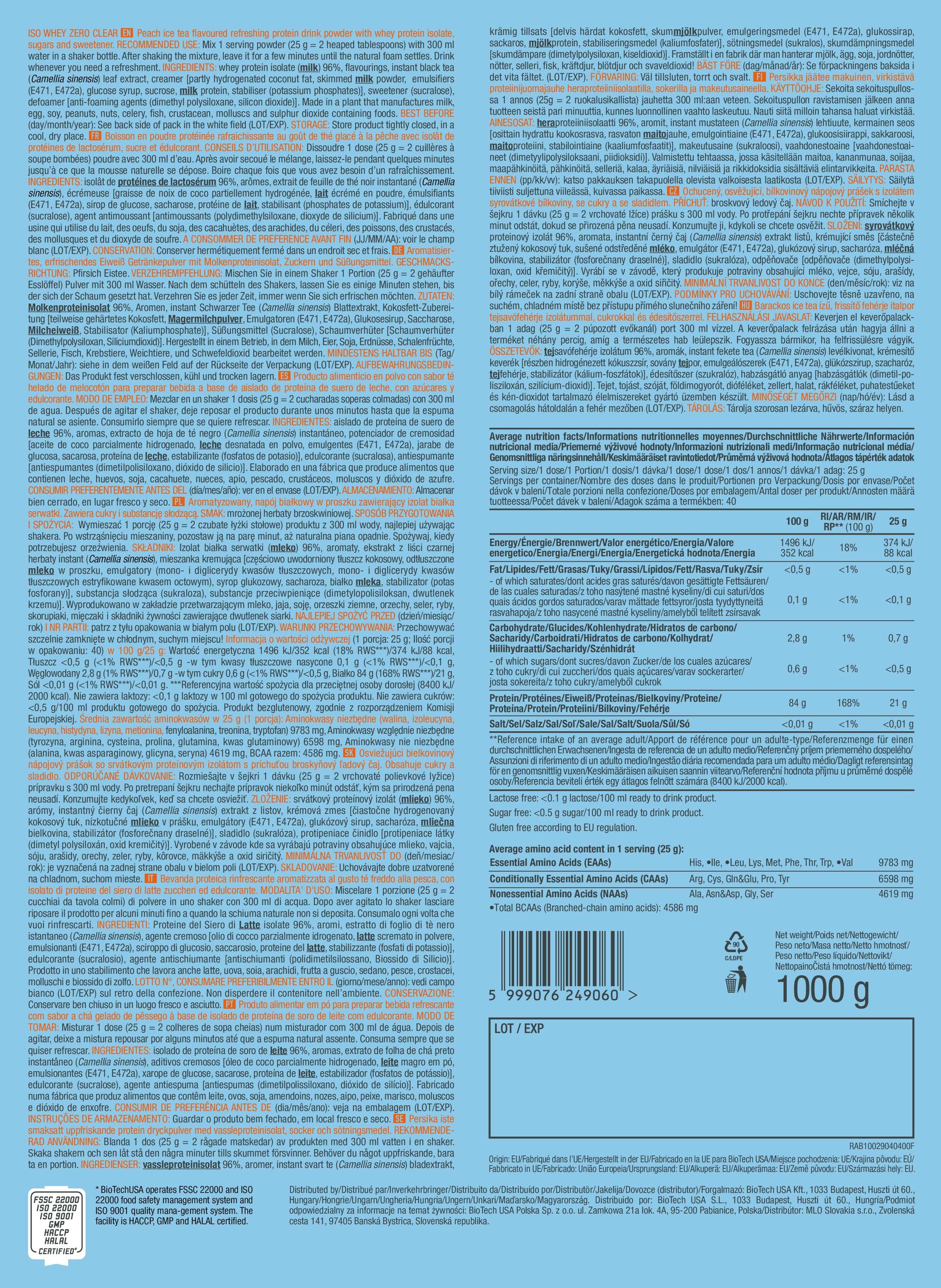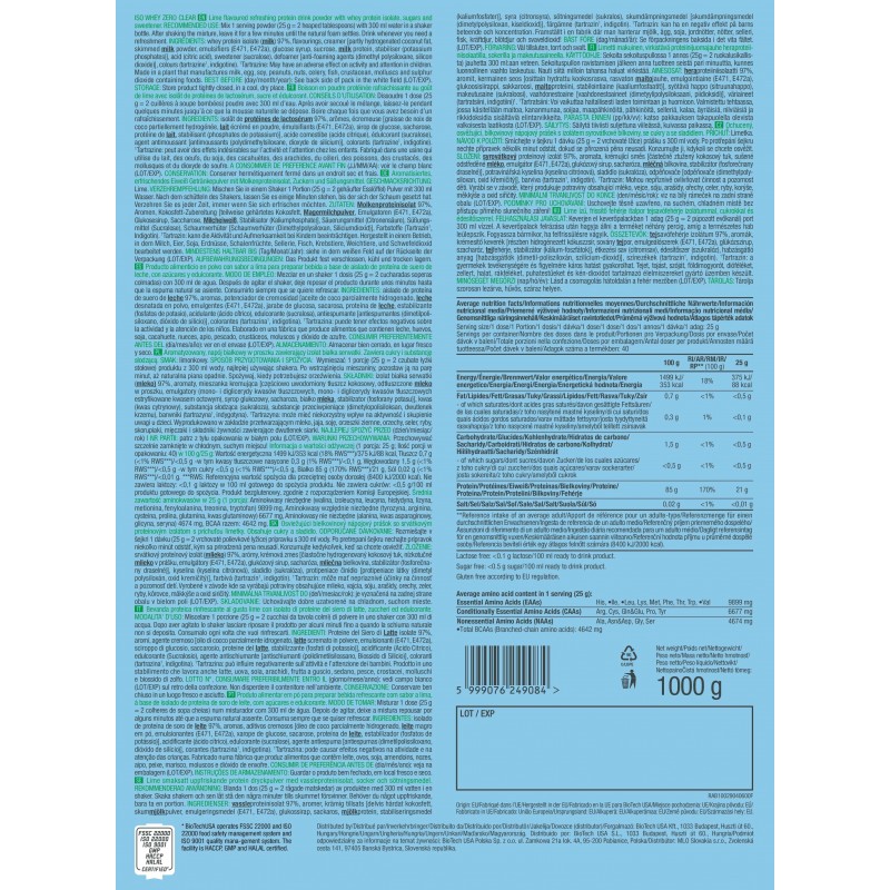 BioTechUSA Iso Whey Zero Clear – 透明分離乳清蛋白