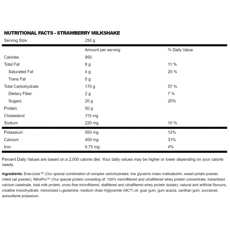 - 含肌酸、谷氨酰胺及牛磺酸,能增加爆發力及加快肌肉復原。
