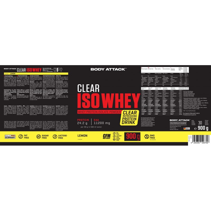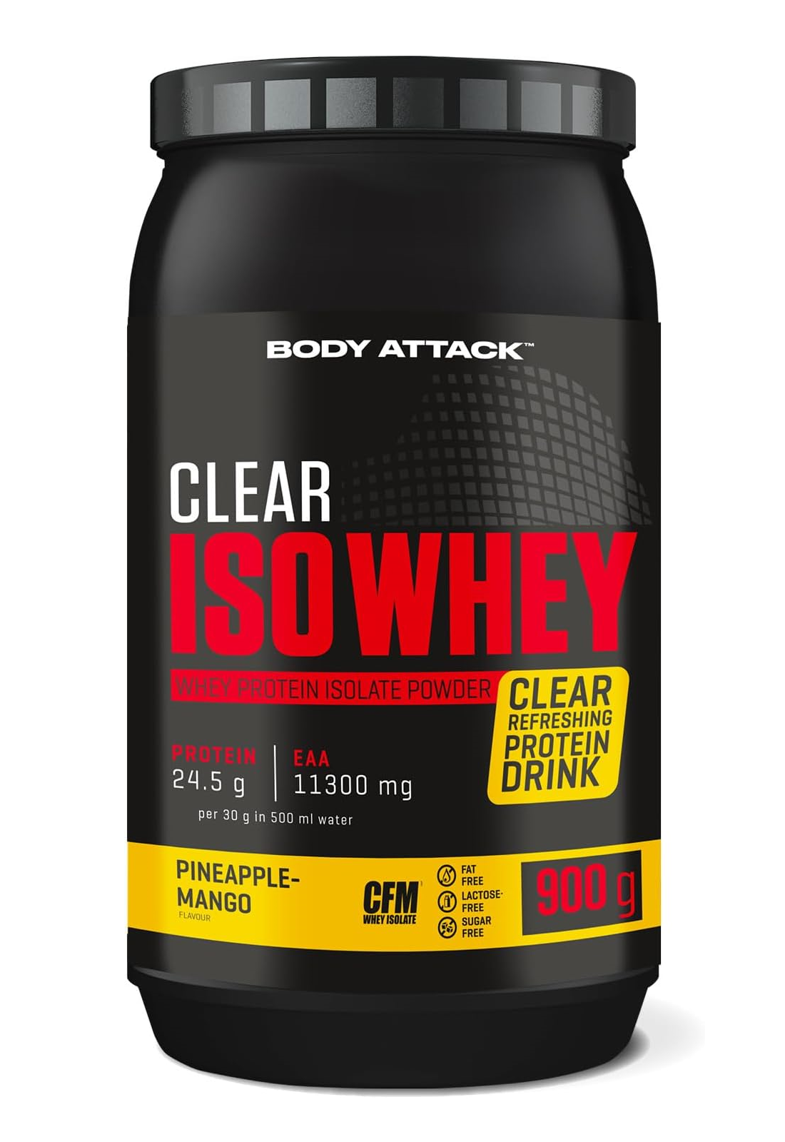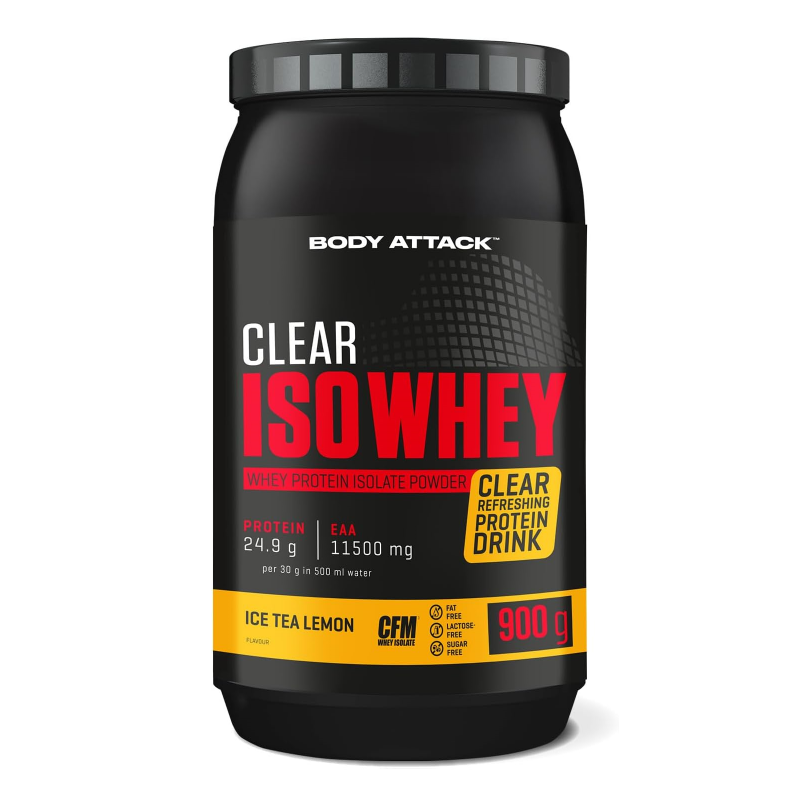 Body Attack Clear Iso Whey 透明乳清蛋白粉為你帶來清爽果汁風味的全新選擇,告別傳統濃稠奶昔!試試 9 種水果口味,找到你最喜歡的專屬口味。每份(30 克)含約 25 克蛋白質與約11,400毫克必需胺基酸(EAAs),助你有效增肌!在你完成最佳表現後,給身體補充所需的建材,幫助肌肉修復與成長。每一杯Clear Iso Whey都含有高品質的 CFM 分離乳清蛋白,不含糖分、脂肪與基因改造成分,讓你的表現始終保持巔峰!