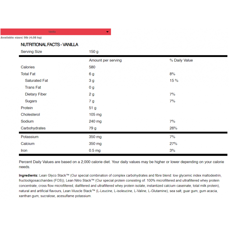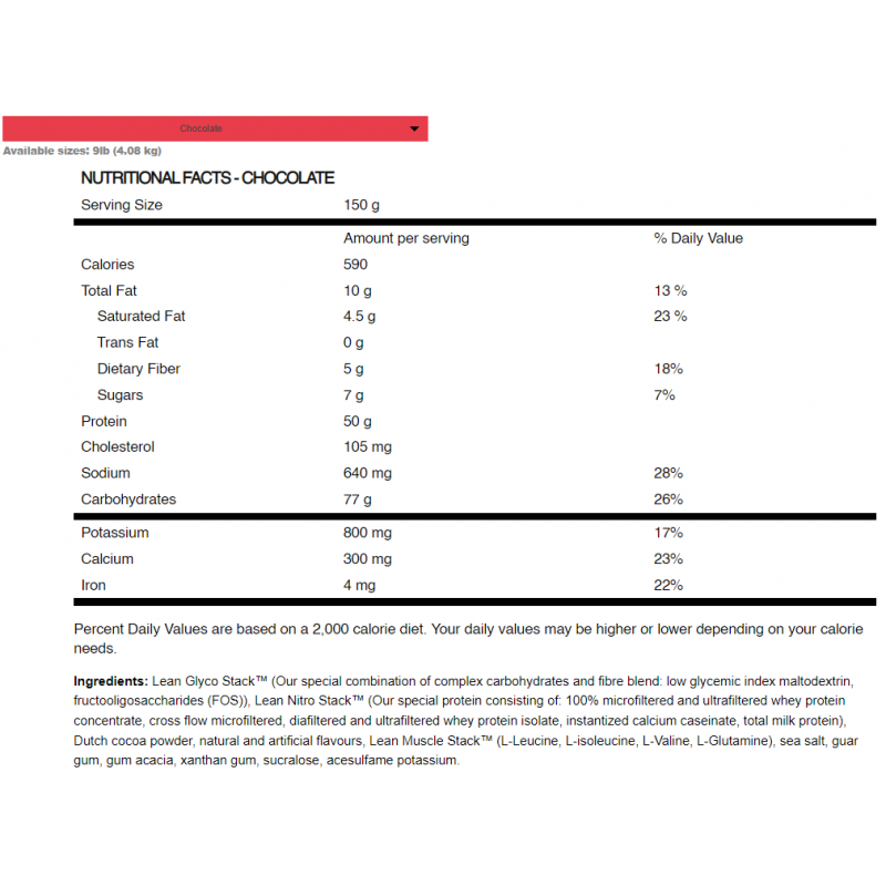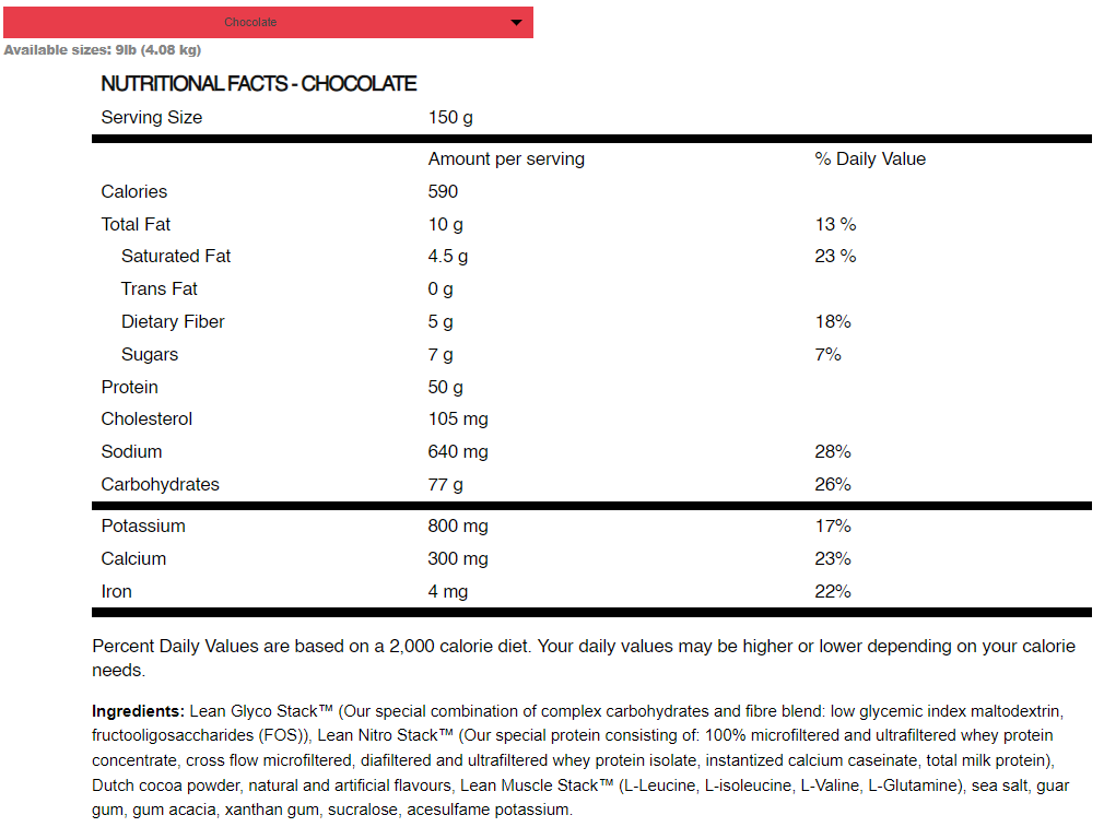 - 糖份及脂肪比例極低,有效增加肌肉量,同時保持相對較低的脂肪水平