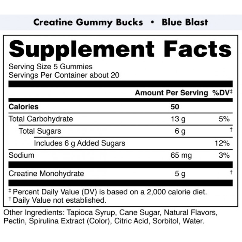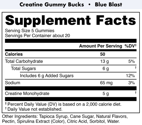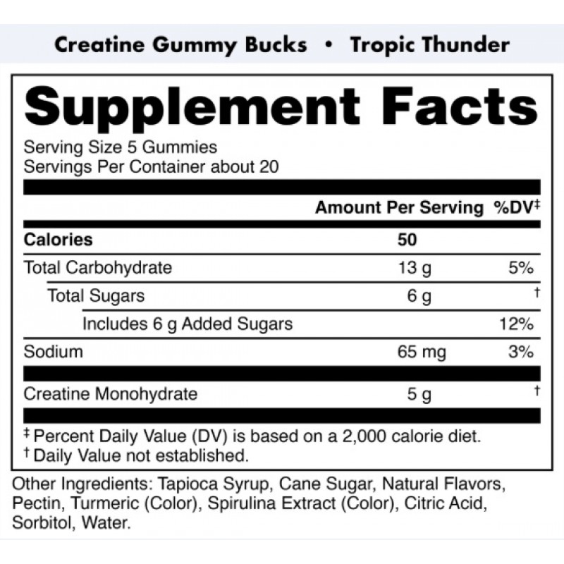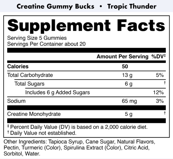 • 每份(5 粒軟糖) 含有 5 克一水肌酸