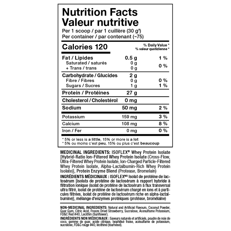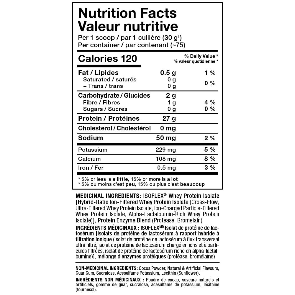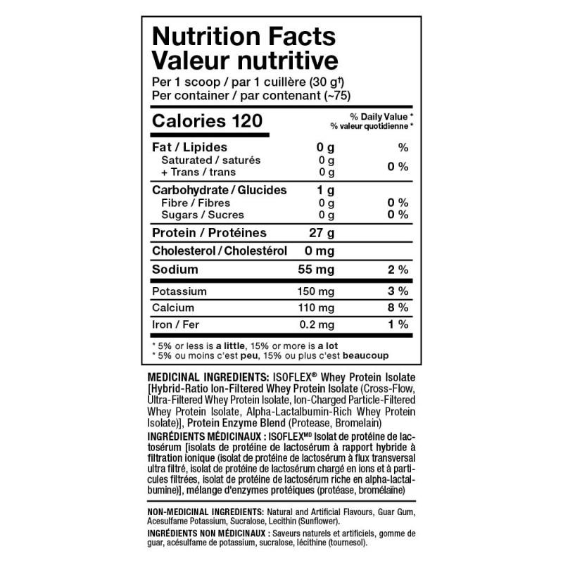 - 每匙含27克純分離乳清蛋白質。
