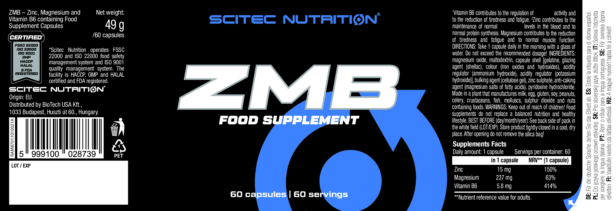 - 科學性結合鋅、鎂和維他命B6。